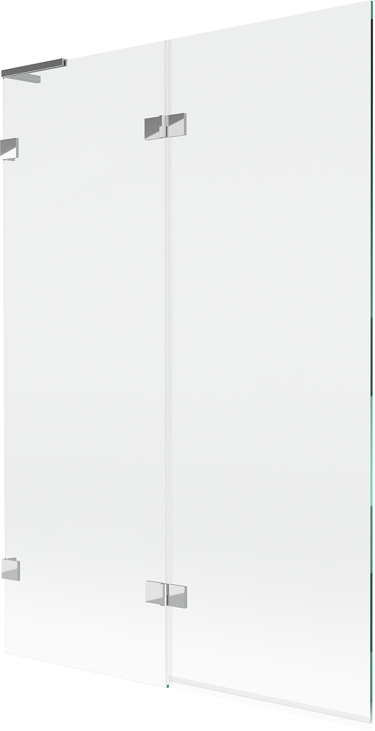 Paravan vyrobený ze dvou křídel s možností složení. Takové řešení umožňuje ušetřit více místa v koupelně a umožňuje volné využití zbývajícího prostoru, když nepoužíváme koupací zónu.
