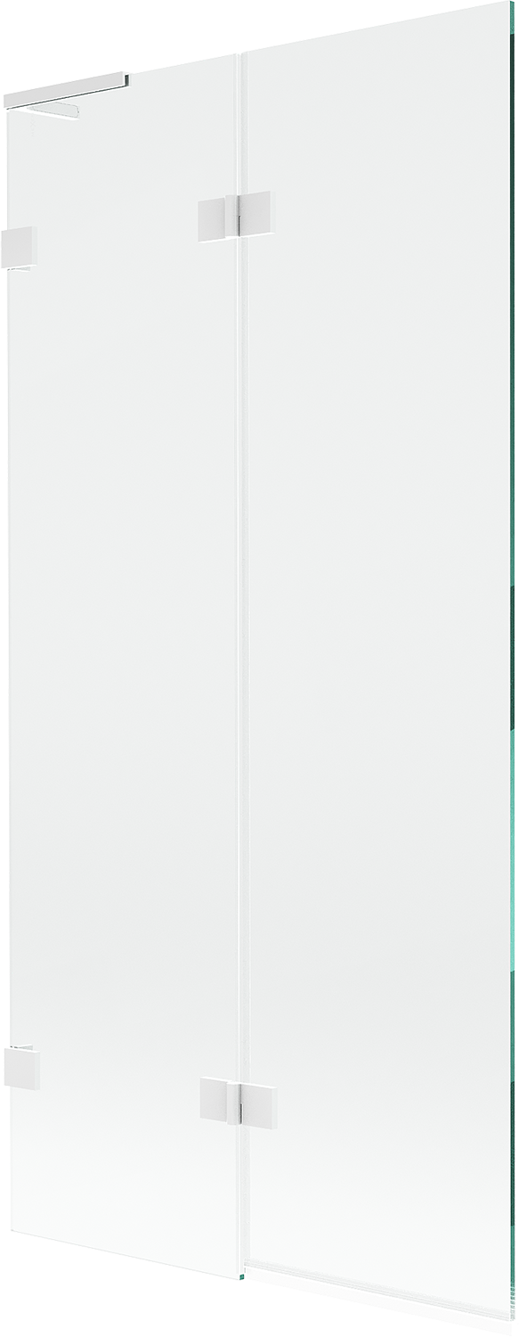 Paravan vyrobený ze dvou křídel s možností složení. Takové řešení umožňuje ušetřit více místa v koupelně a umožňuje volné využití zbývajícího prostoru, když nepoužíváme koupací zónu.