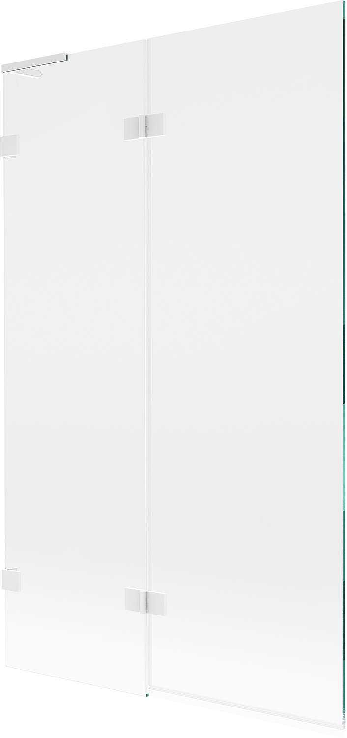 Paravan vyrobený ze dvou křídel s možností složení. Takové řešení umožňuje ušetřit více místa v koupelně a umožňuje volné využití zbývajícího prostoru, když nepoužíváme koupací zónu.
