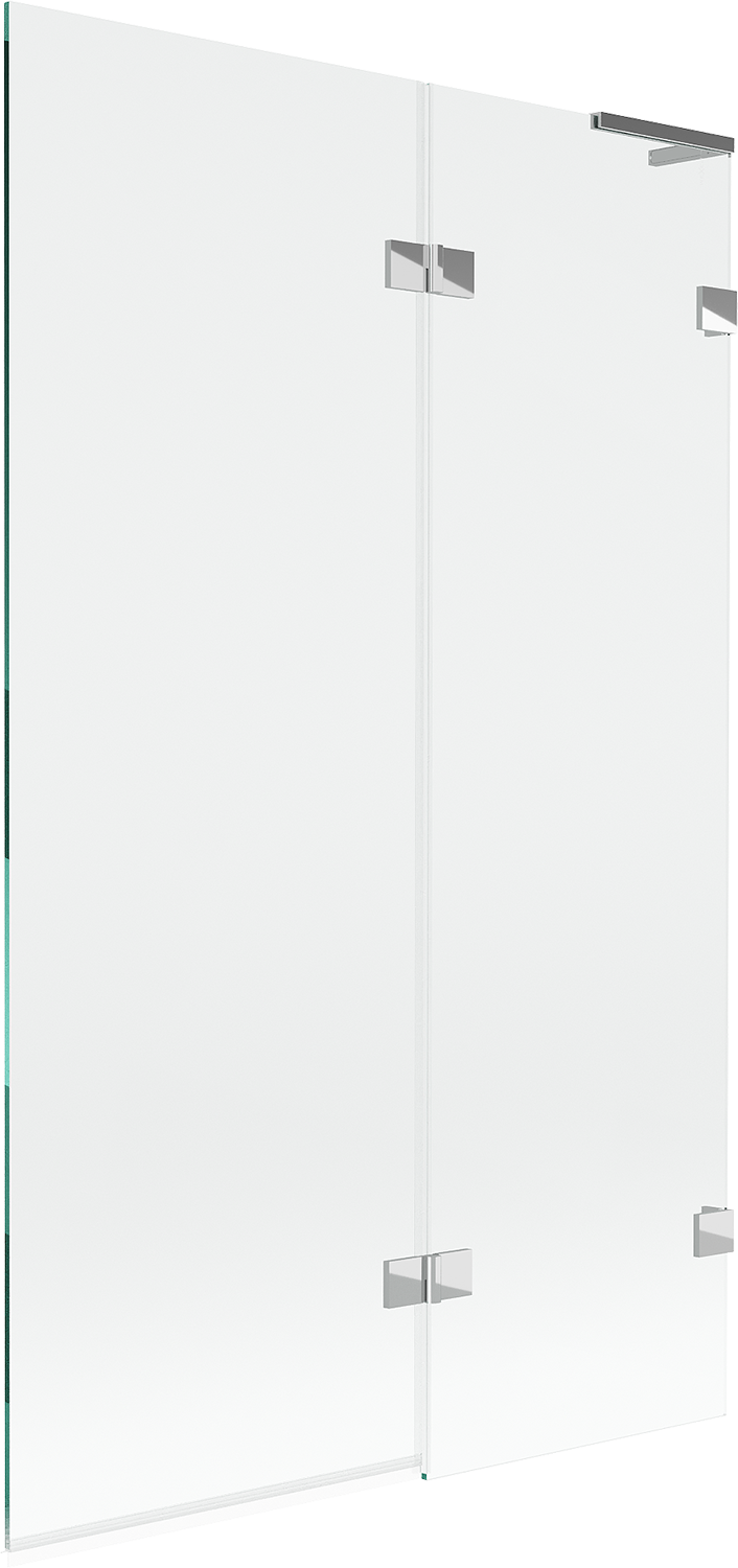 Paravan vyrobený ze dvou křídel s možností složení. Takové řešení umožňuje ušetřit více místa v koupelně a umožňuje volné využití zbývajícího prostoru, když nepoužíváme koupací zónu.