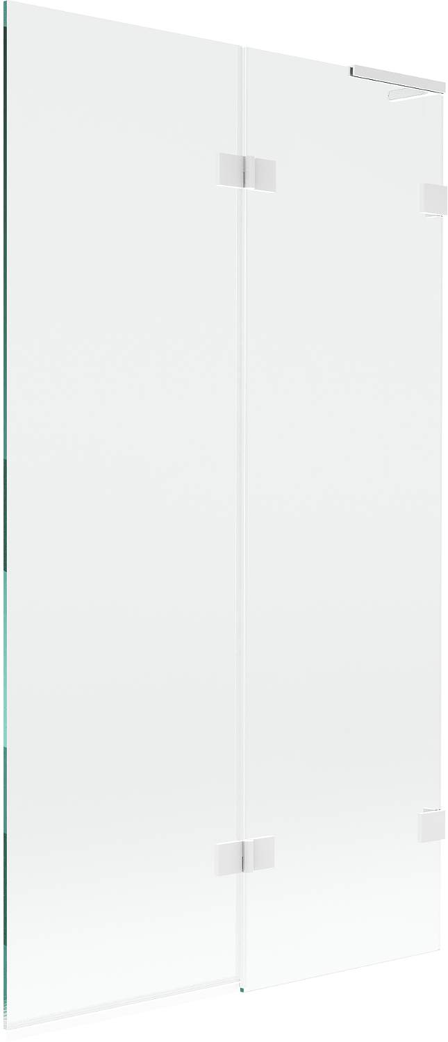 Paravan vyrobený ze dvou křídel s možností složení. Takové řešení umožňuje ušetřit více místa v koupelně a umožňuje volné využití zbývajícího prostoru, když nepoužíváme koupací zónu.