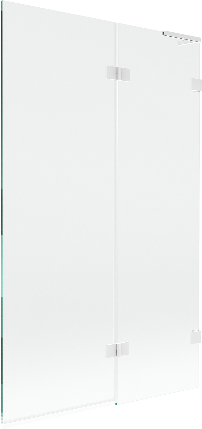 Paravan vyrobený ze dvou křídel s možností složení. Takové řešení umožňuje ušetřit více místa v koupelně a umožňuje volné využití zbývajícího prostoru, když nepoužíváme koupací zónu.