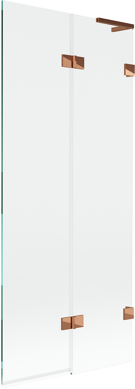 Paravan vyrobený ze dvou křídel s možností složení. Takové řešení umožňuje ušetřit více místa v koupelně a umožňuje volné využití zbývajícího prostoru, když nepoužíváme koupací zónu.