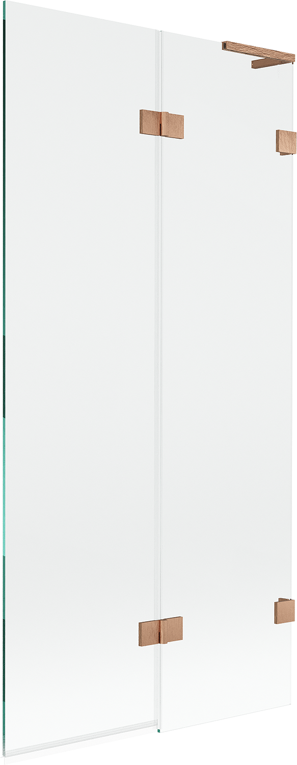 Mexen Lunar L vanová zástěna dvoukřídlá pravá 90 x 150 cm, transparentní, kartáčovaná měď - 897L-090-100-65-00-P