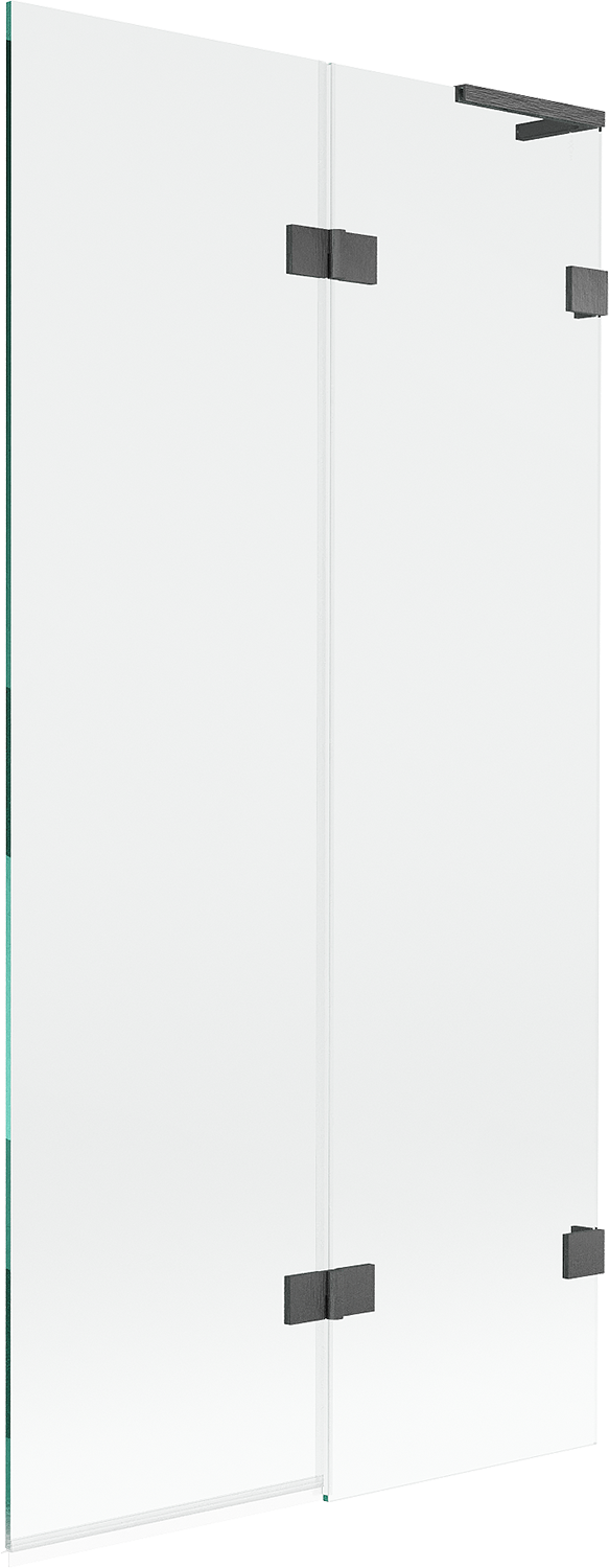 Paravan vyrobený ze dvou křídel s možností složení. Takové řešení umožňuje ušetřit více místa v koupelně a umožňuje volné využití zbývajícího prostoru, když nepoužíváme koupací zónu.