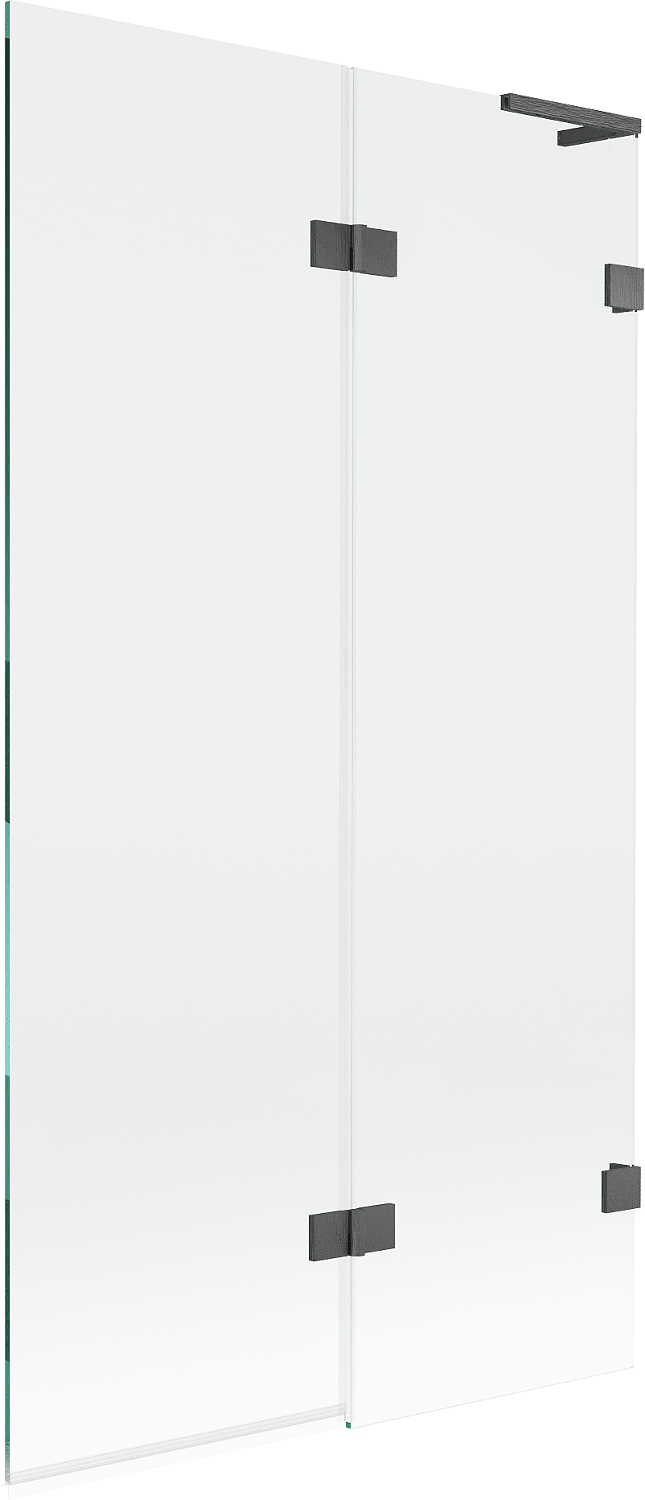 Paravan vyrobený ze dvou křídel s možností složení. Takové řešení umožňuje ušetřit více místa v koupelně a umožňuje volné využití zbývajícího prostoru, když nepoužíváme koupací zónu.