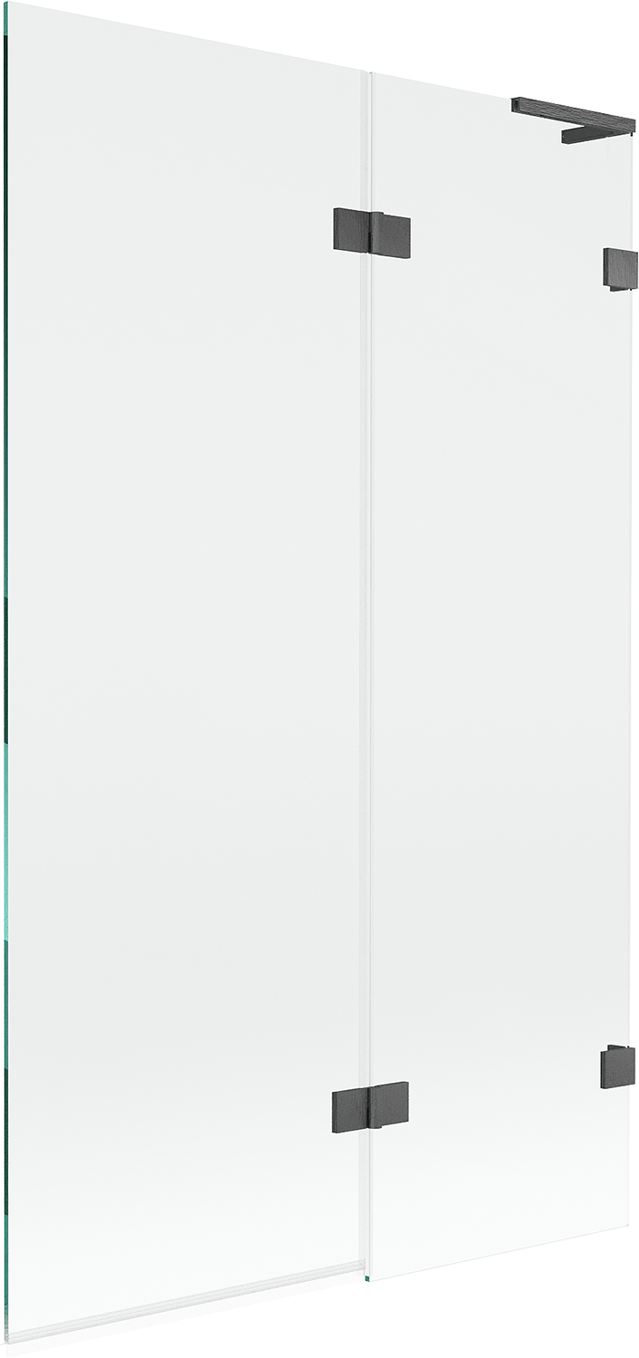 Paravan vyrobený ze dvou křídel s možností složení. Takové řešení umožňuje ušetřit více místa v koupelně a umožňuje volné využití zbývajícího prostoru, když nepoužíváme koupací zónu.