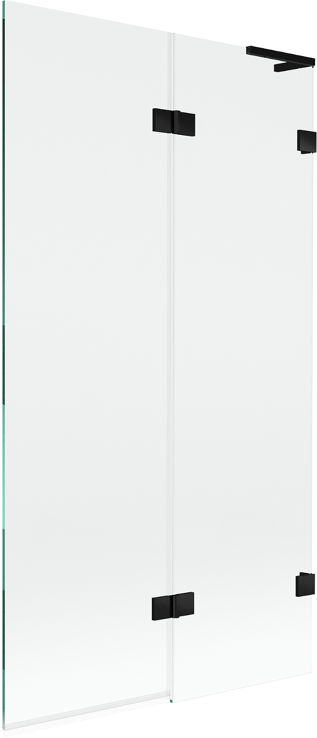 Paravan vyrobený ze dvou křídel s možností složení. Takové řešení umožňuje ušetřit více místa v koupelně a umožňuje volné využití zbývajícího prostoru, když nepoužíváme koupací zónu.