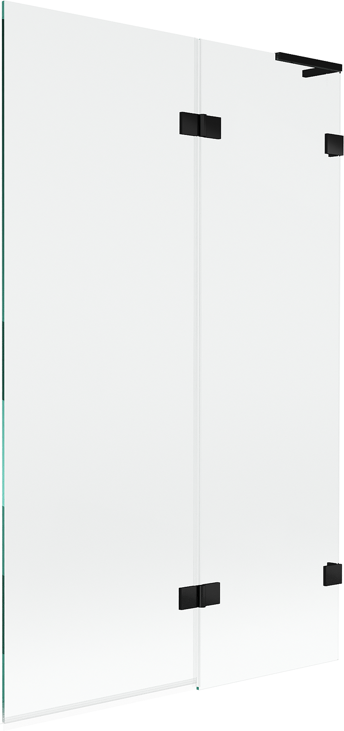 Paravan vyrobený ze dvou křídel s možností složení. Takové řešení umožňuje ušetřit více místa v koupelně a umožňuje volné využití zbývajícího prostoru, když nepoužíváme koupací zónu.