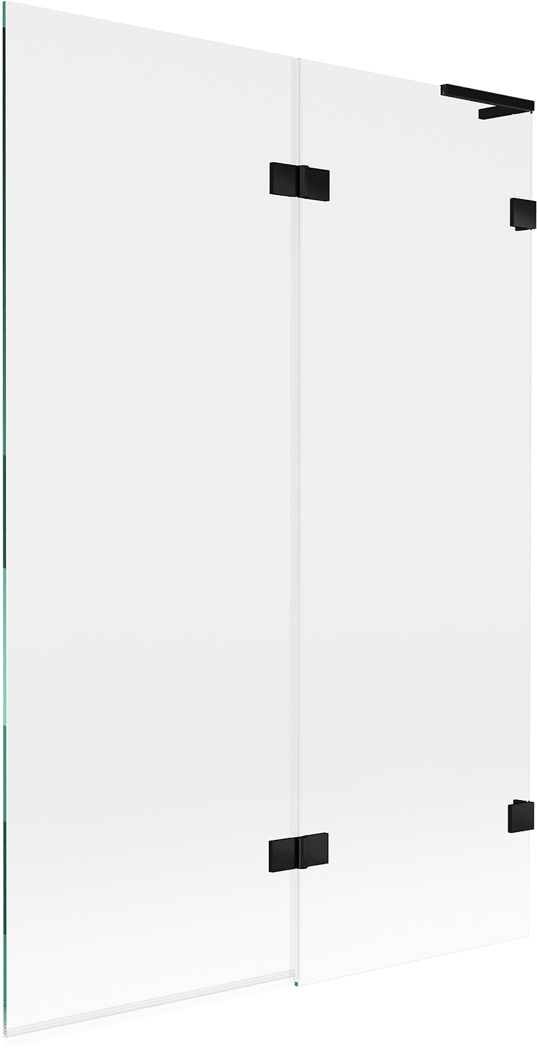 Paravan vyrobený ze dvou křídel s možností složení. Takové řešení umožňuje ušetřit více místa v koupelně a umožňuje volné využití zbývajícího prostoru, když nepoužíváme koupací zónu.