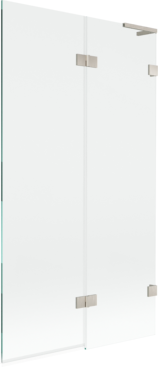 Paravan vyrobený ze dvou křídel s možností složení. Takové řešení umožňuje ušetřit více místa v koupelně a umožňuje volné využití zbývajícího prostoru, když nepoužíváme koupací zónu.