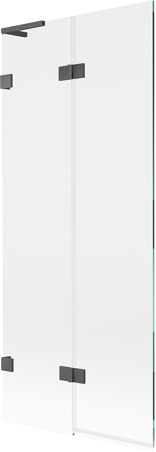 Paravan vyrobený ze dvou křídel s možností složení. Takové řešení umožňuje ušetřit více místa v koupelně a umožňuje volné využití zbývajícího prostoru, když nepoužíváme koupací zónu.