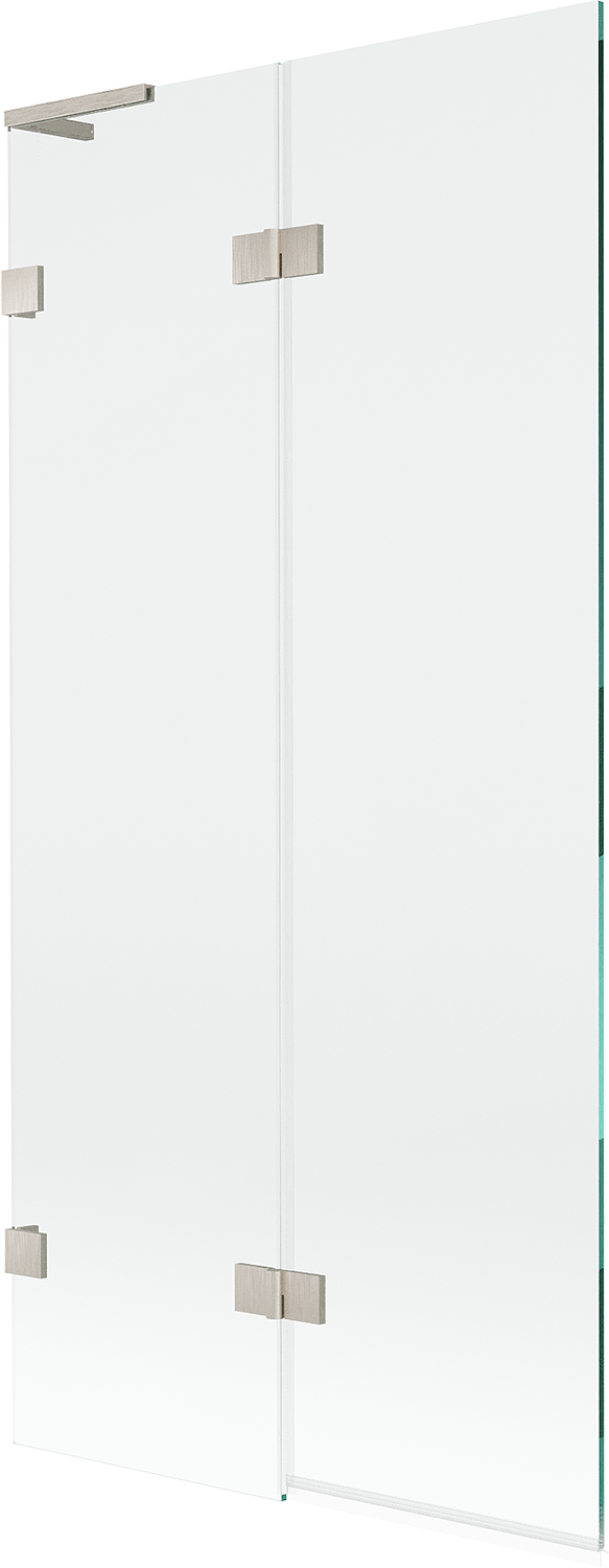 Paravan vyrobený ze dvou křídel s možností složení. Takové řešení umožňuje ušetřit více místa v koupelně a umožňuje volné využití zbývajícího prostoru, když nepoužíváme koupací zónu.