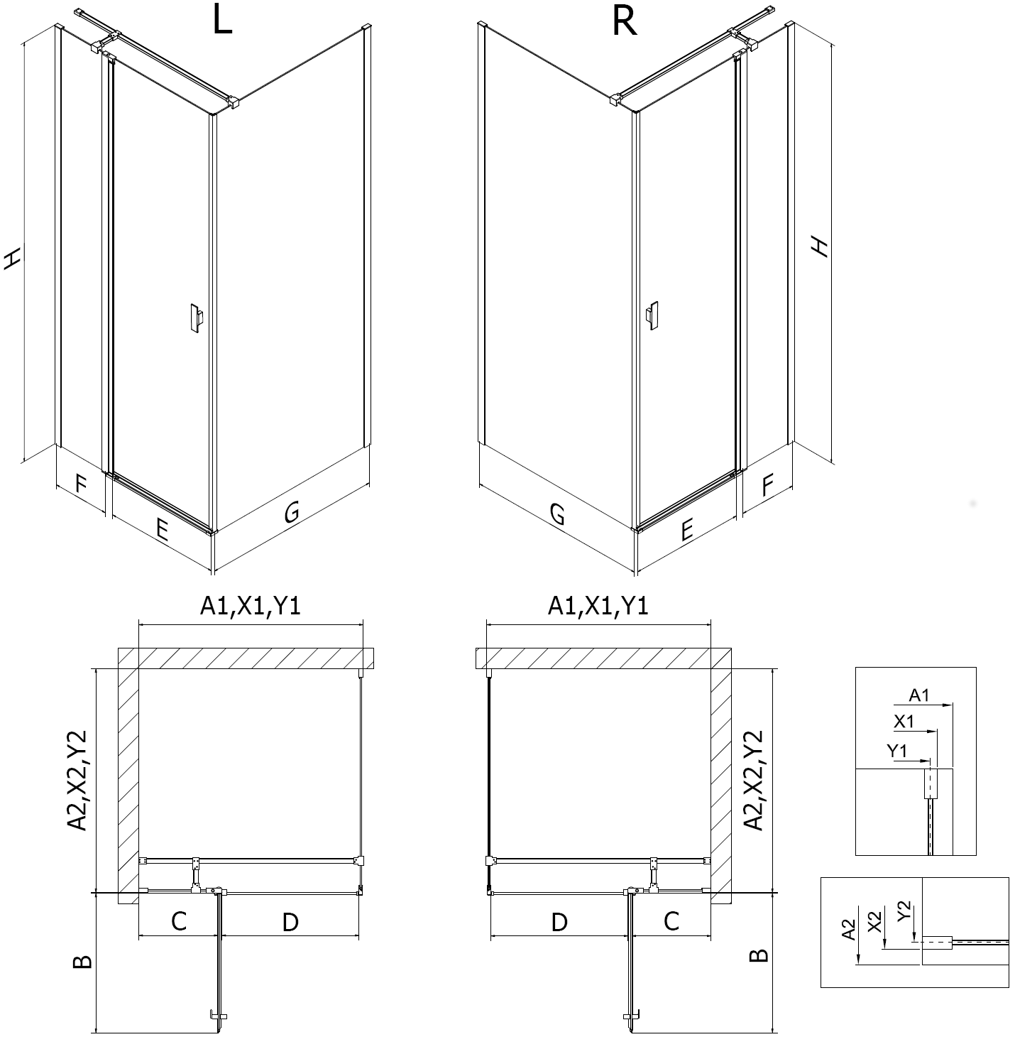 Rozměr: 95x100 cm (levé dveře 95 cm, stěna 100 cm)