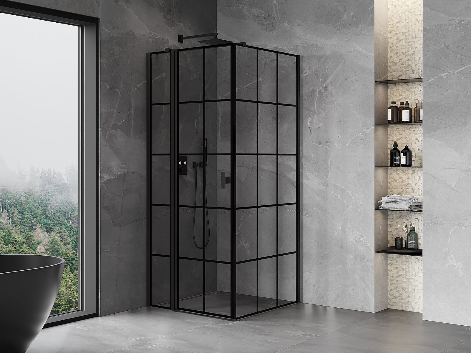 Mexen Mist T sprchová kabina výklopná levá 90 x 90 cm, černá mřížka, černá - 8A4T-090-090-70-77-L