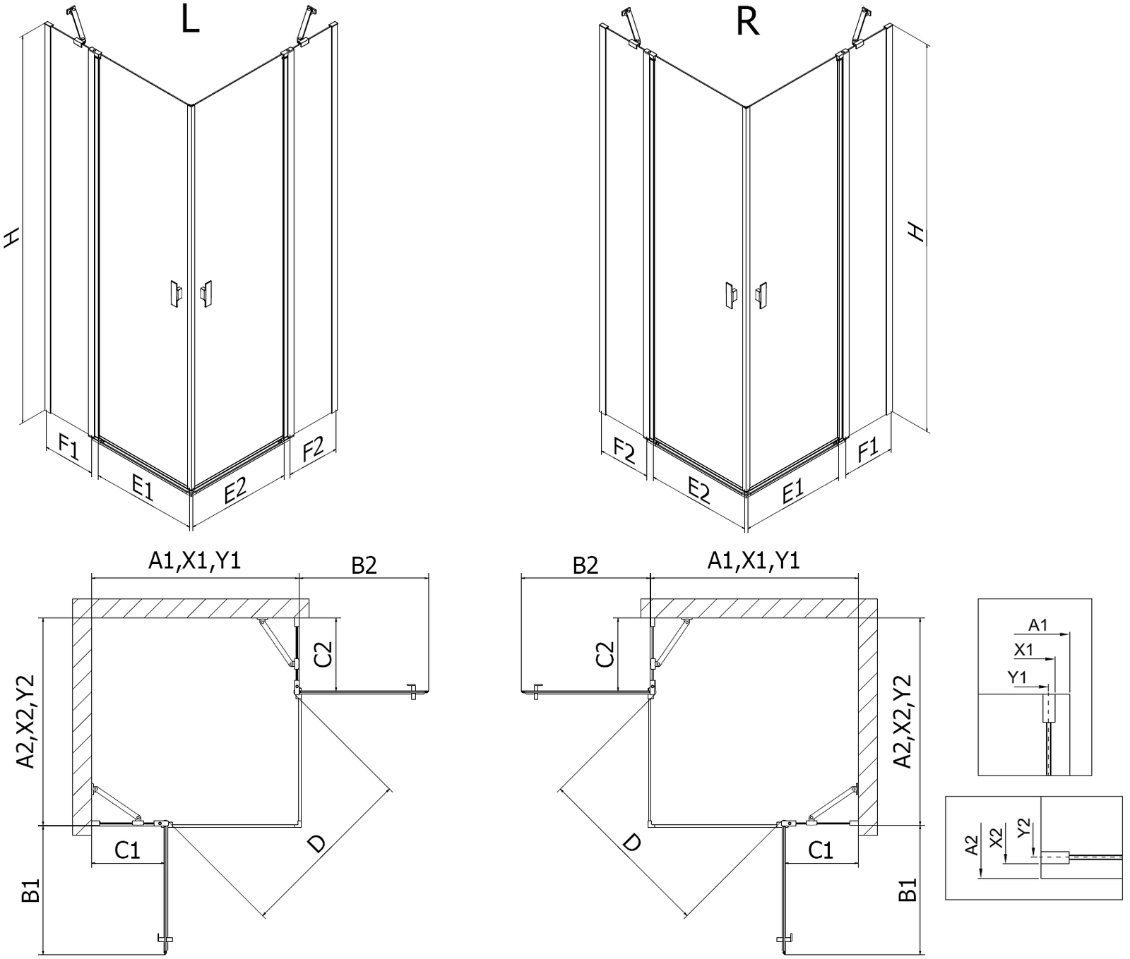 Díky použití univerzálního montážního systému mohou být sprchové dveře namontovány na pravé nebo levé straně, podle potřeby. Díky tomu můžete snadno navrhnout sprchu přizpůsobenou prostoru koupelny.