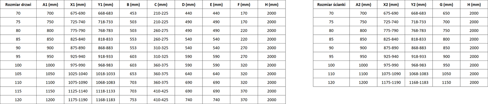 Velikost: 105x95 cm (dveře 105 cm, stěna 95 cm)