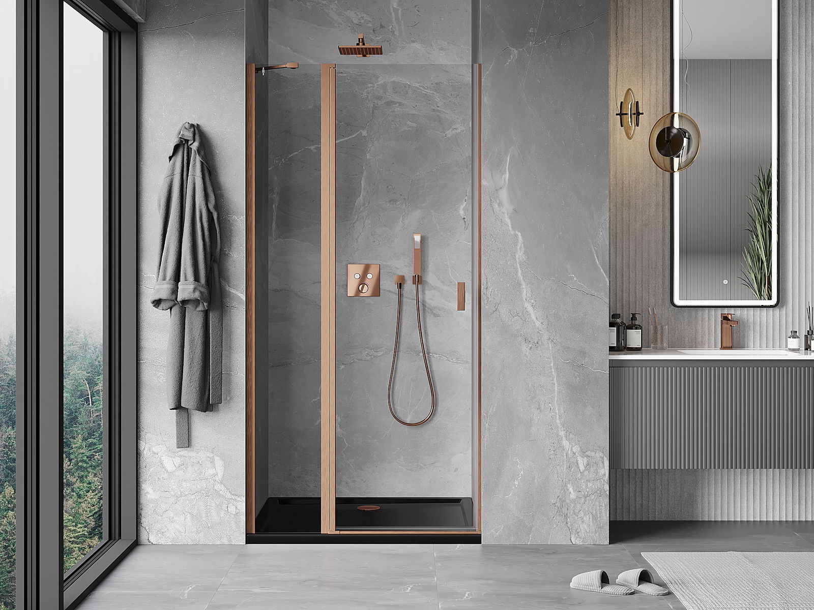 Mexen Mist sprchové dveře otevírací 80 cm, transparentní, kartáčovaná měď - 8A4-080-000-65-00