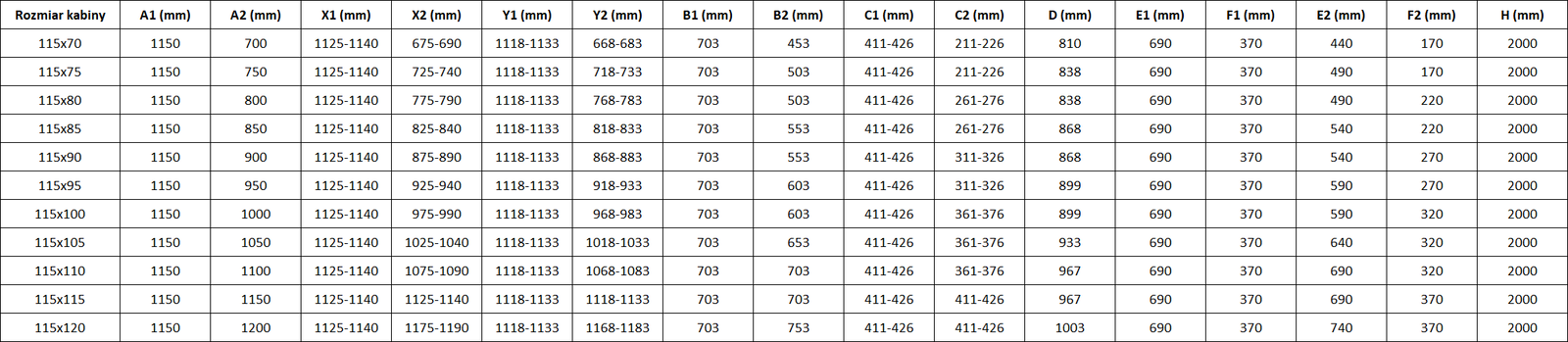 Rozměr: 115x95 cm (levé dveře 115 cm, pravé dveře 95 cm)