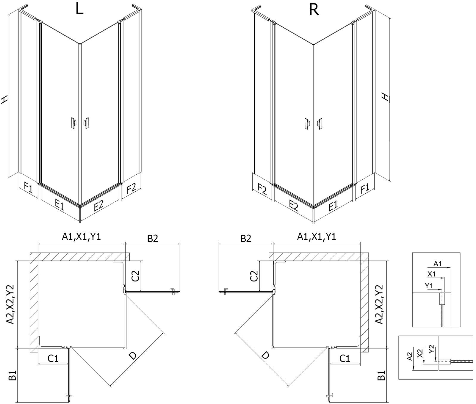 Díky použití univerzálního montážního systému mohou být sprchové dveře namontovány na pravé nebo levé straně, podle potřeby. Díky tomu můžete snadno navrhnout sprchu přizpůsobenou prostoru koupelny.