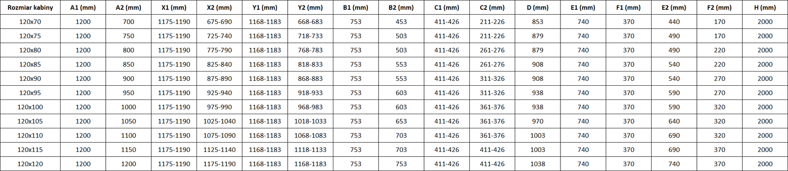 Sprchové kouty, dveře a stěny jsou standardně přizpůsobeny pro montáž na sprchové vaničky určitých rozměrů. Právě tyto rozměry jsou uvedeny v názvu nebo popisu výrobku. Je však třeba mít na paměti, že skutečné rozměry prvků se mohou mírně lišit od nominálních hodnot. V případě plánované instalace přímo na podlahu se doporučuje pečlivě zkontrolovat vnější rozměry a uspořádání prvků podle technického výkresu.
