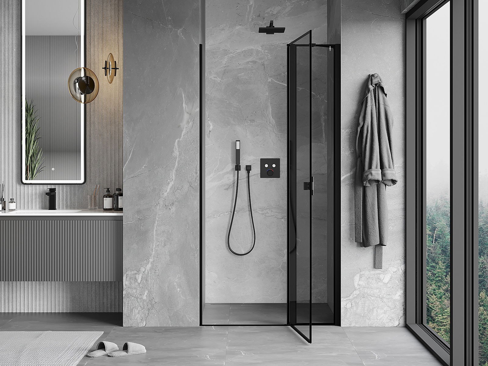 • Mexen Mist sprchové dveře výklopné pravé 90 cm, černý rám, černé - 8A4-090-000-70-70-P