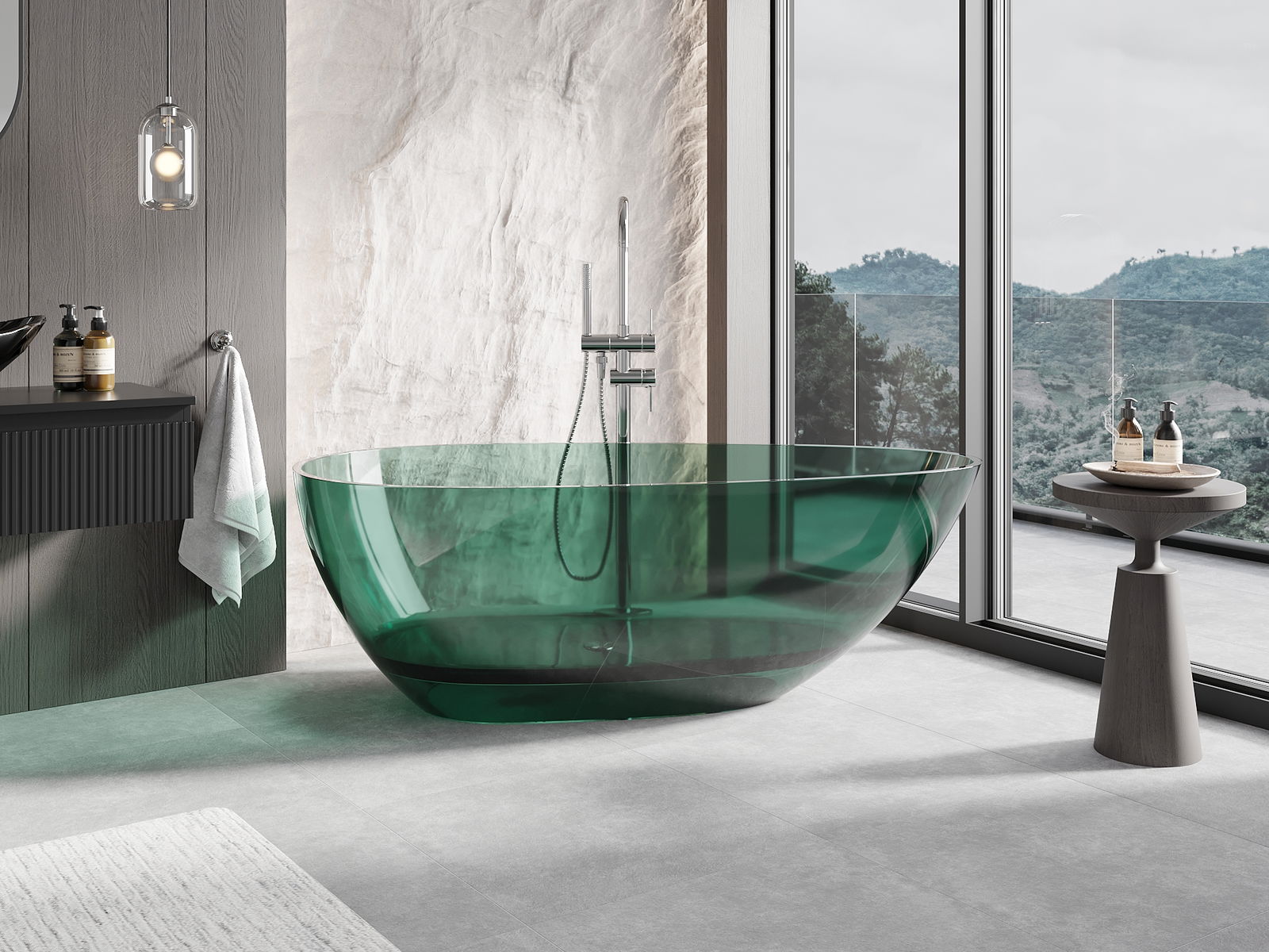 Jedná se o moderní materiál spojující elegantní vzhled s vysokou odolností. Je odolný vůči mechanickému poškození, snadno se čistí a je příjemný na dotek. Průhledná forma a tenký okraj vany jí dodávají lehkost a jedinečný charakter, čímž vytvářejí působivý prvek v uspořádání koupelny.