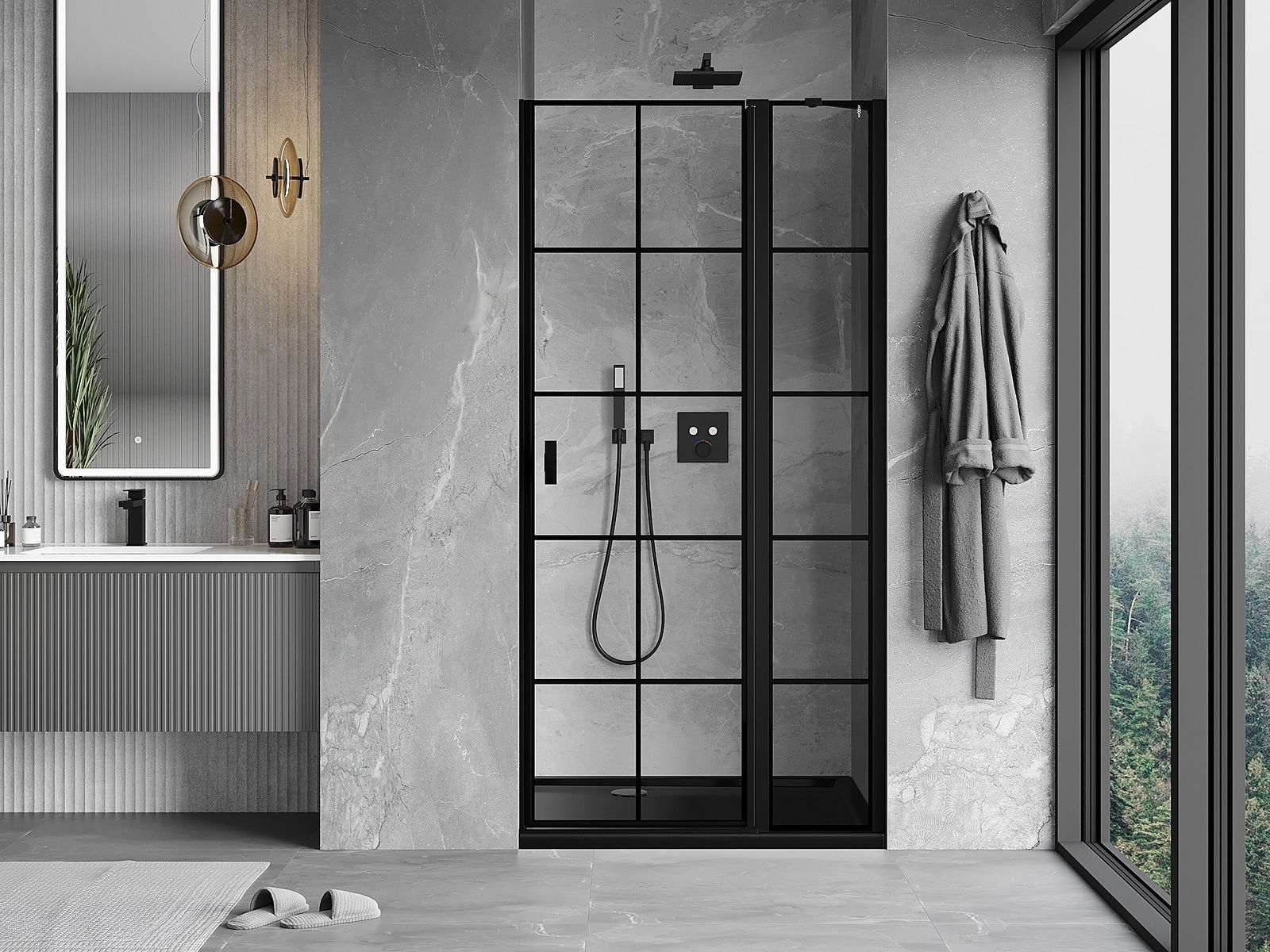 Mexen Mist sprchové dveře výklopné pravé 75 cm, černá mřížka, černé - 8A4-075-000-70-77-P