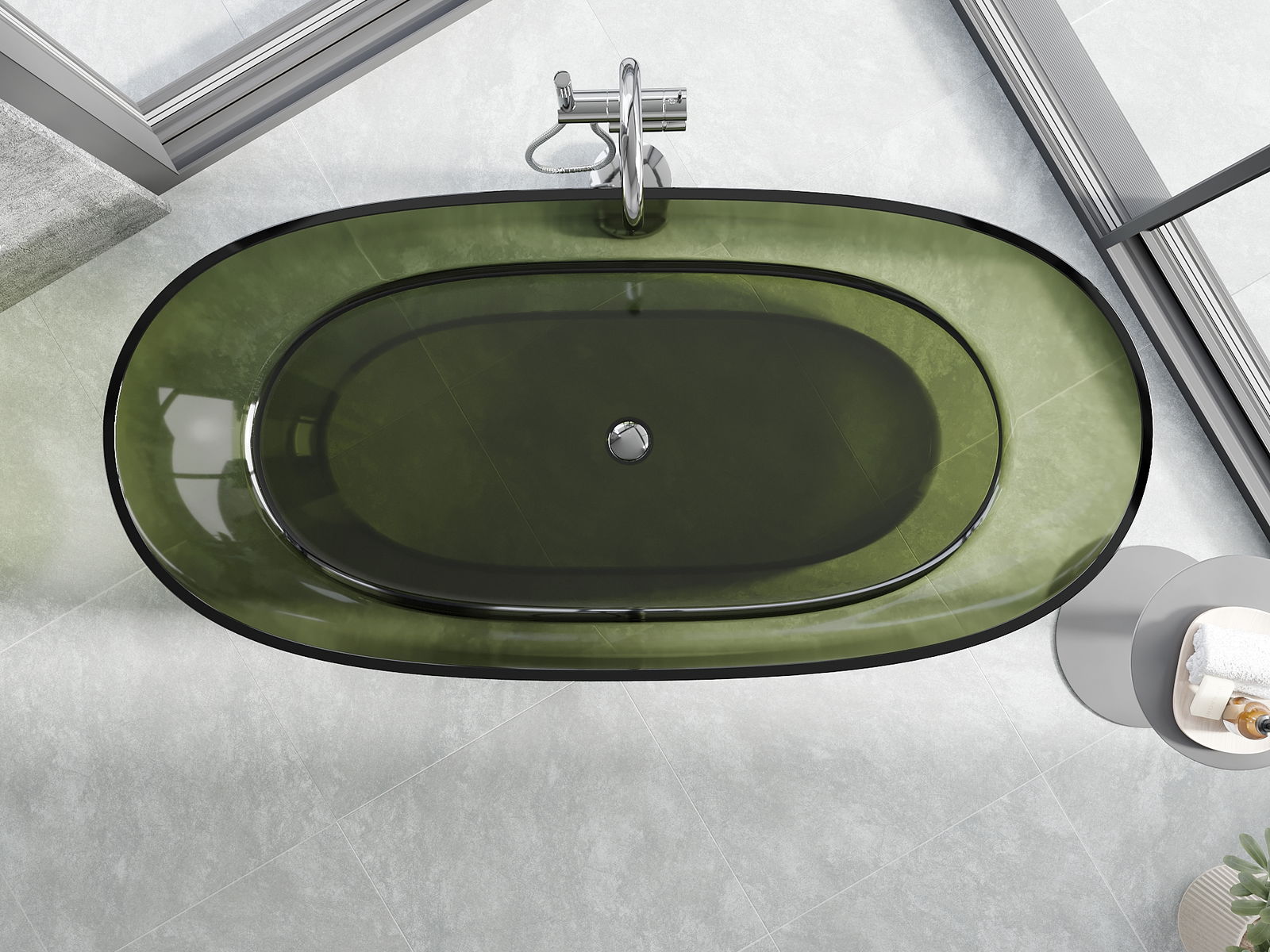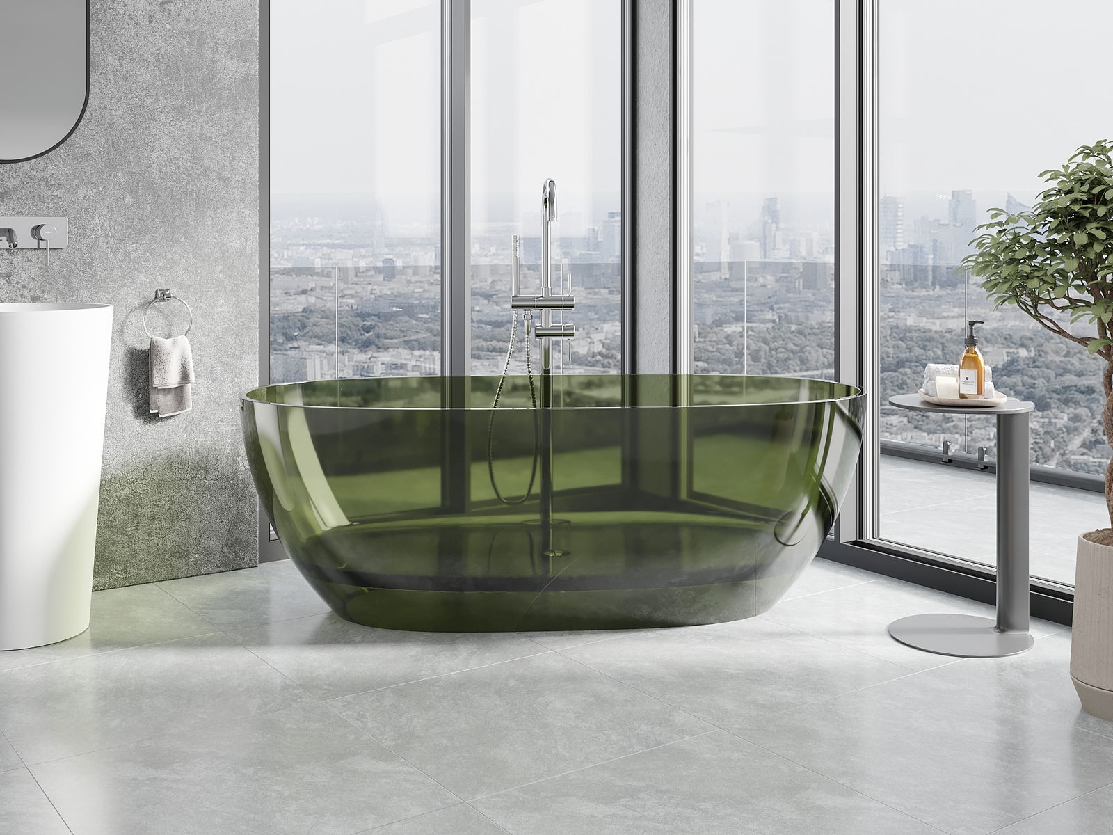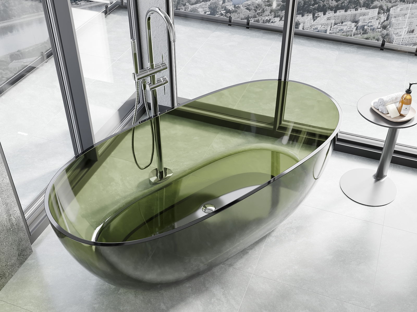 Jedná se o moderní materiál spojující elegantní vzhled s vysokou odolností. Je odolný vůči mechanickému poškození, snadno se čistí a je příjemný na dotek. Průhledná forma a tenký okraj vany jí dodávají lehkost a jedinečný charakter, čímž vytvářejí působivý prvek v uspořádání koupelny.