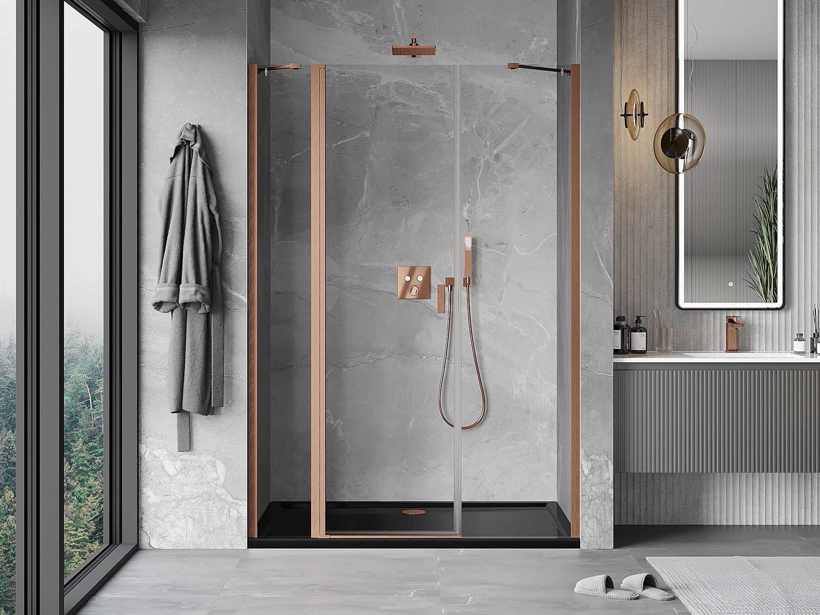 Praktická a pohodlná rukojeť je vyrobena z odolného a trvanlivého kovu. Moderní tvar ve spojení s povrchovou úpravou, která ladí s barvou profilů, dodává celku moderní a stylový vzhled, zdůrazňující estetiku každé koupelny.