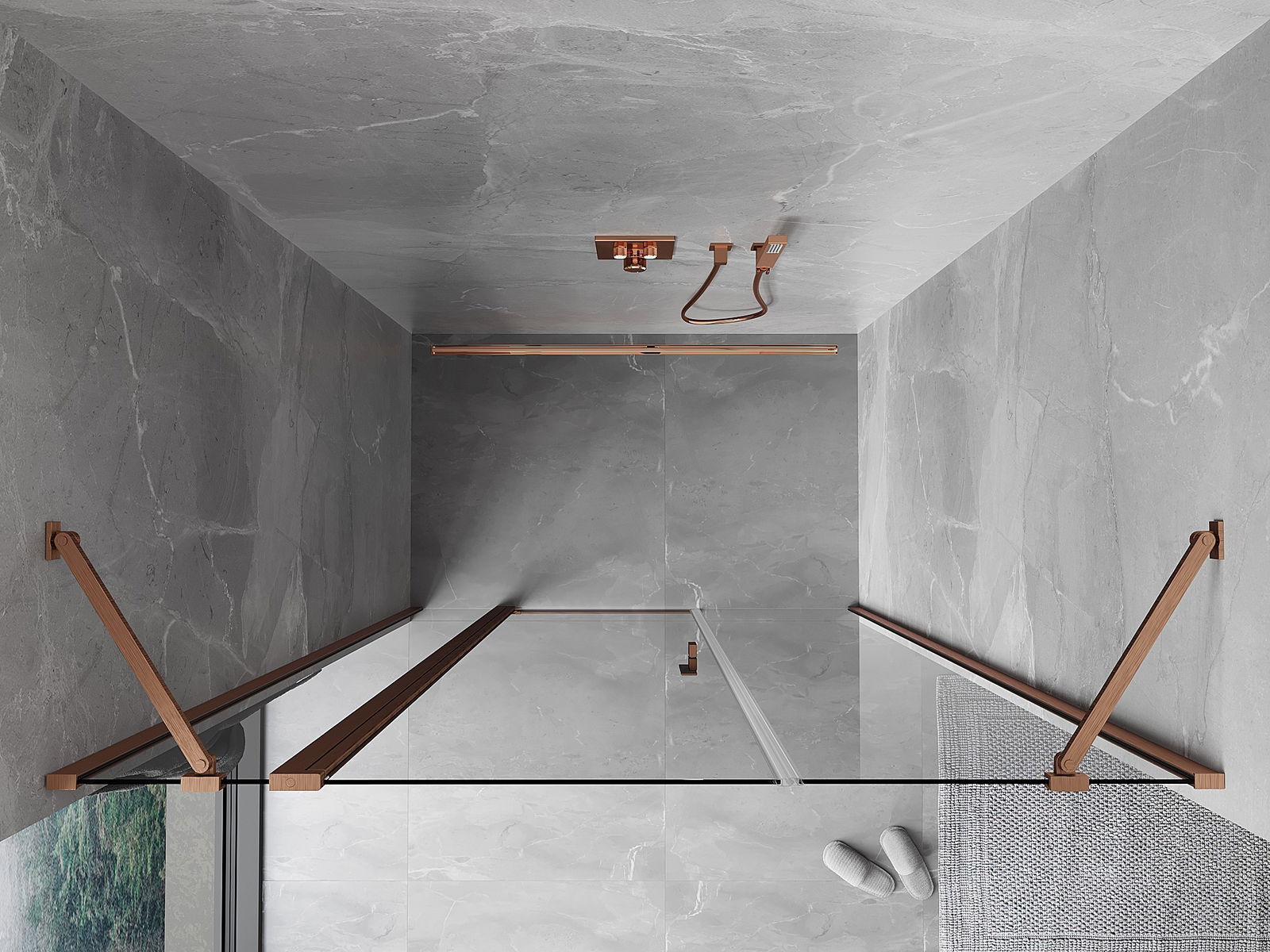 Mexen Mist sprchové dveře otočné 145 cm, průhledné, kartáčovaná měď - 8A4-145-001-65-00