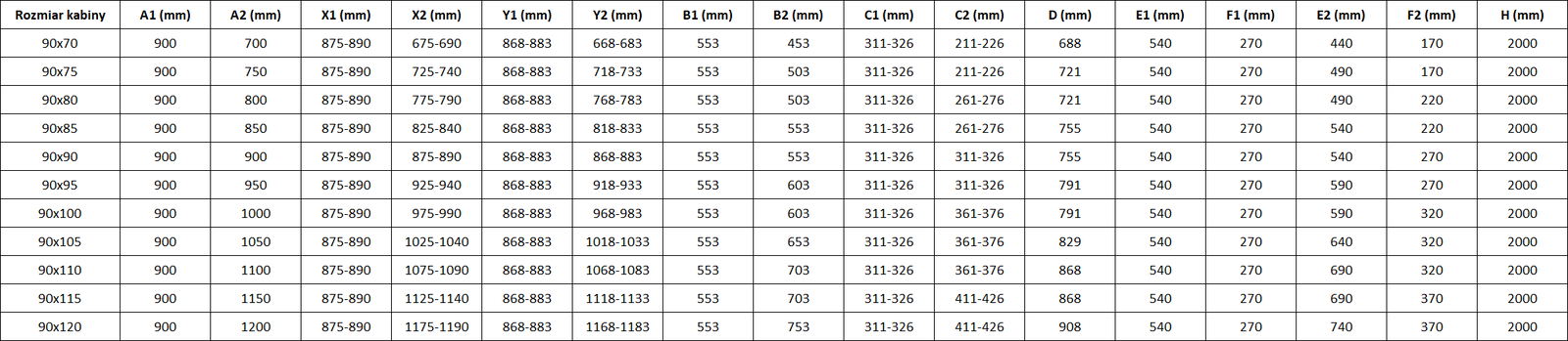 Velikost: 90x90 cm (levé dveře 90 cm, pravé dveře 90 cm)