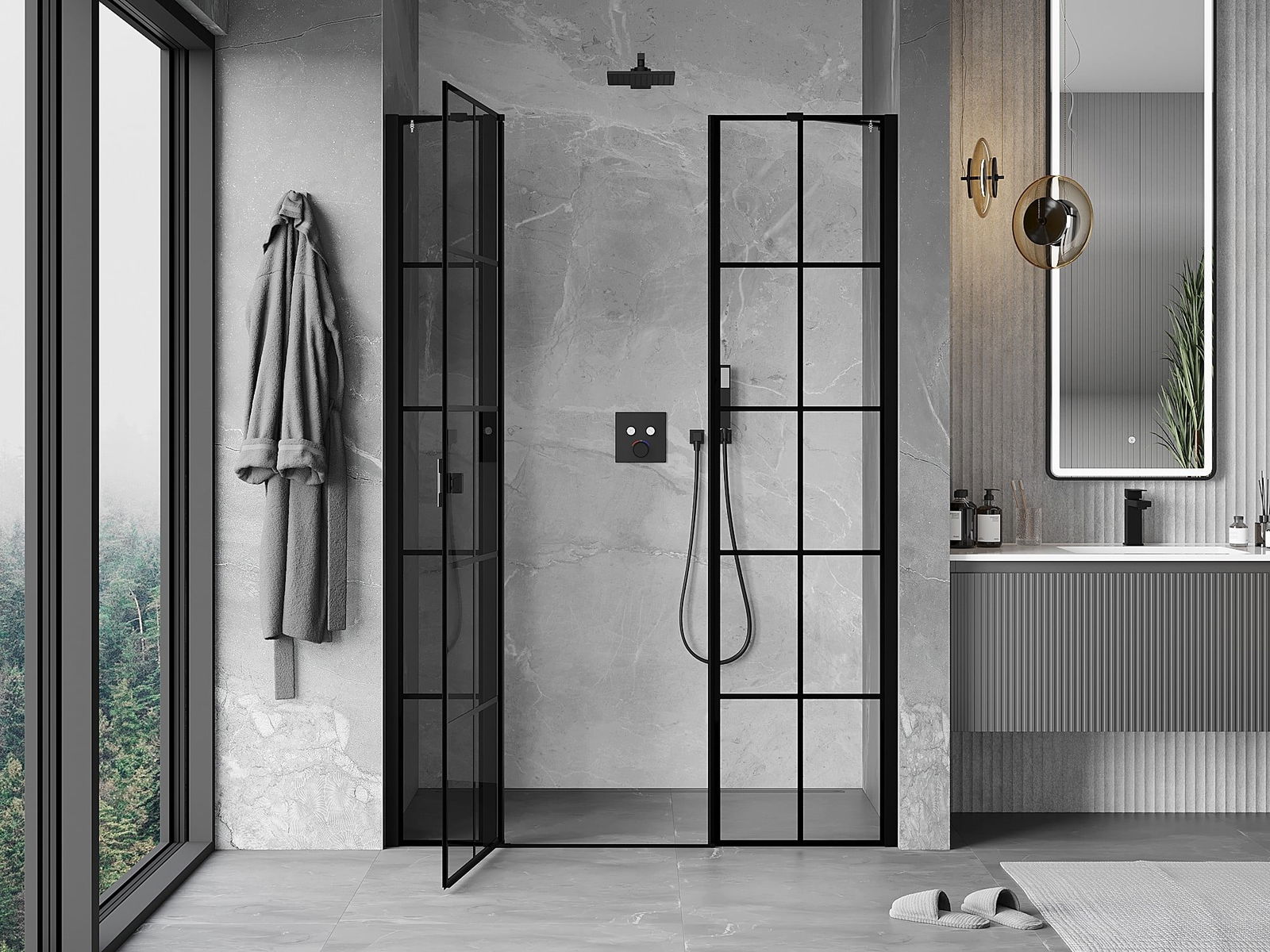 Otevírací dveře umožňují maximální svobodu při používání. Mají pevné panty vyrobené z odolného materiálu, které se snadno čistí a umožňují snadný přístup do interiéru kabiny.