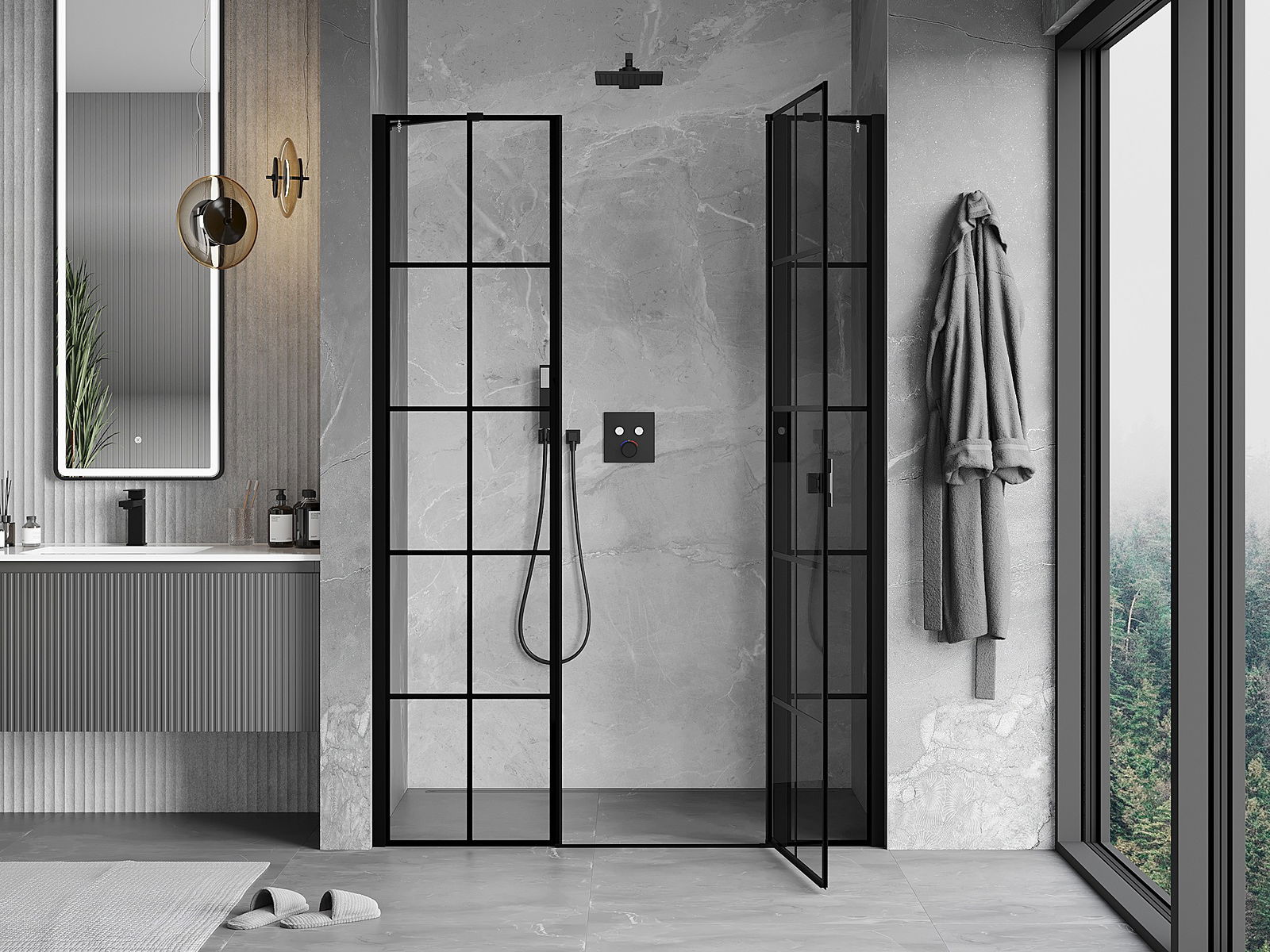 Mexen Mist sprchové dveře otevírací pravé 130 cm, černá mřížka, černé - 8A4-130-001-70-77-P