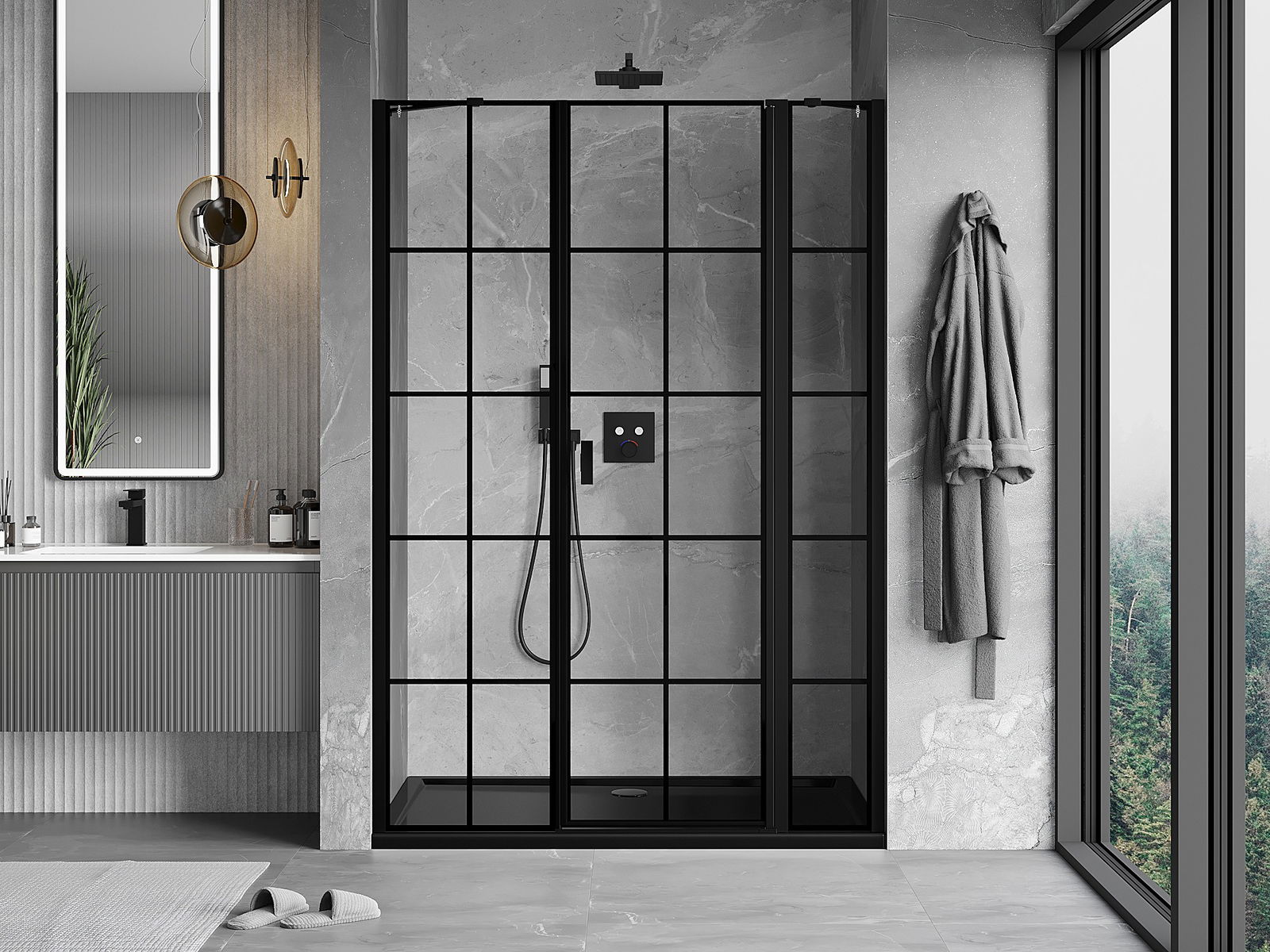 Praktická a pohodlná rukojeť je vyrobena z odolného a trvanlivého kovu. Moderní tvar ve spojení s povrchovou úpravou, která ladí s barvou profilů, dodává celku moderní a stylový vzhled, zdůrazňující estetiku každé koupelny.