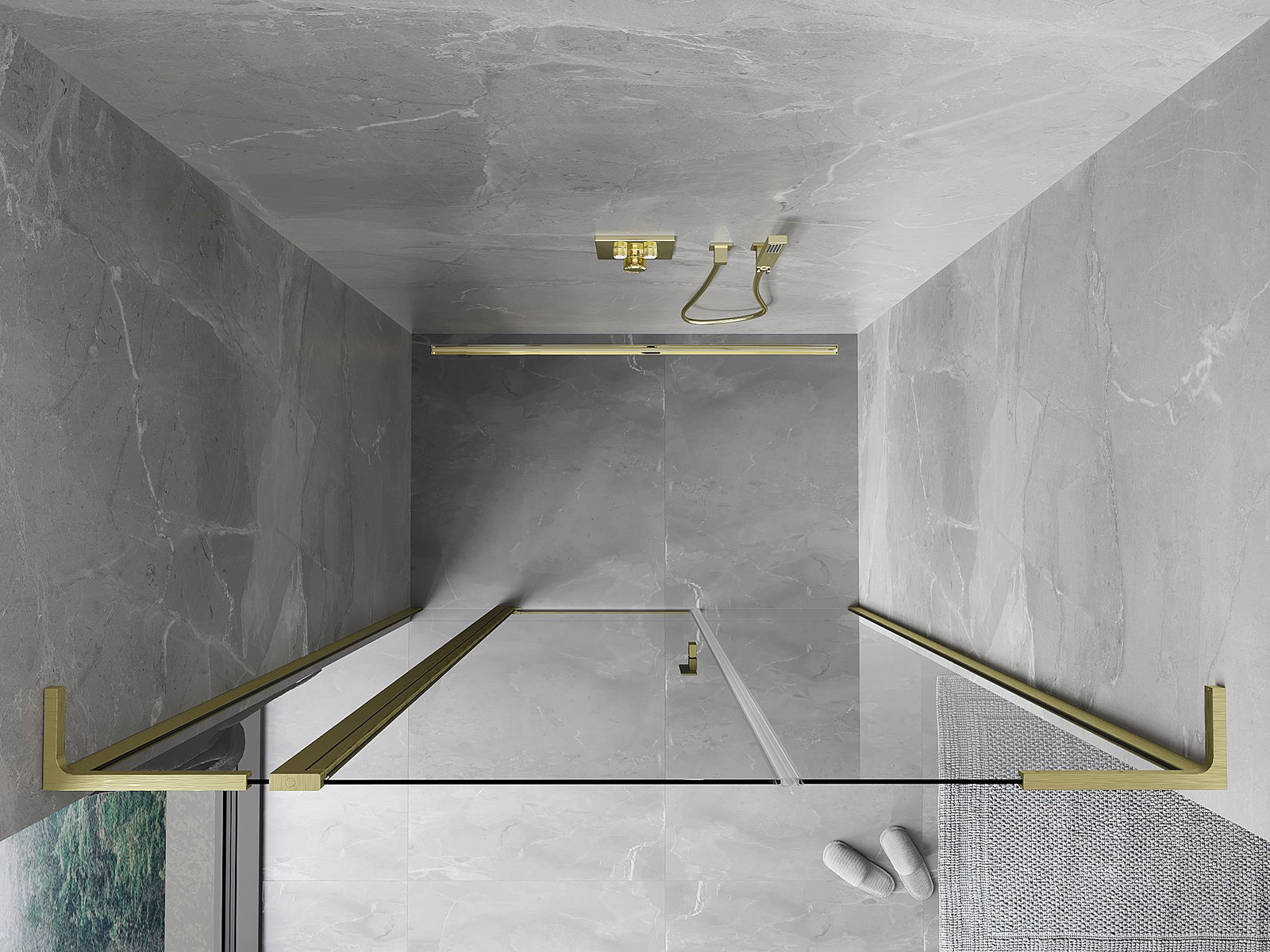 Mexen Mist L otevírací sprchové dveře 140 cm, transparentní, zlaté kartáčované - 8A4L-140-001-55-00