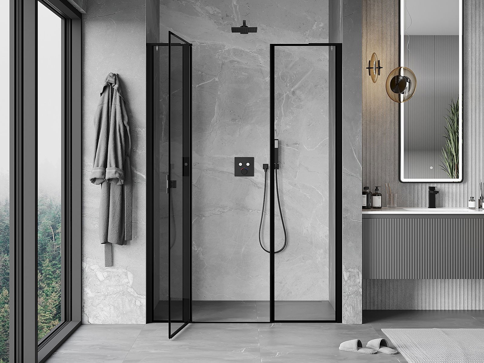 Otevírací dveře umožňují maximální svobodu při používání. Mají pevné panty vyrobené z odolného materiálu, které se snadno čistí a umožňují snadný přístup do interiéru kabiny.
