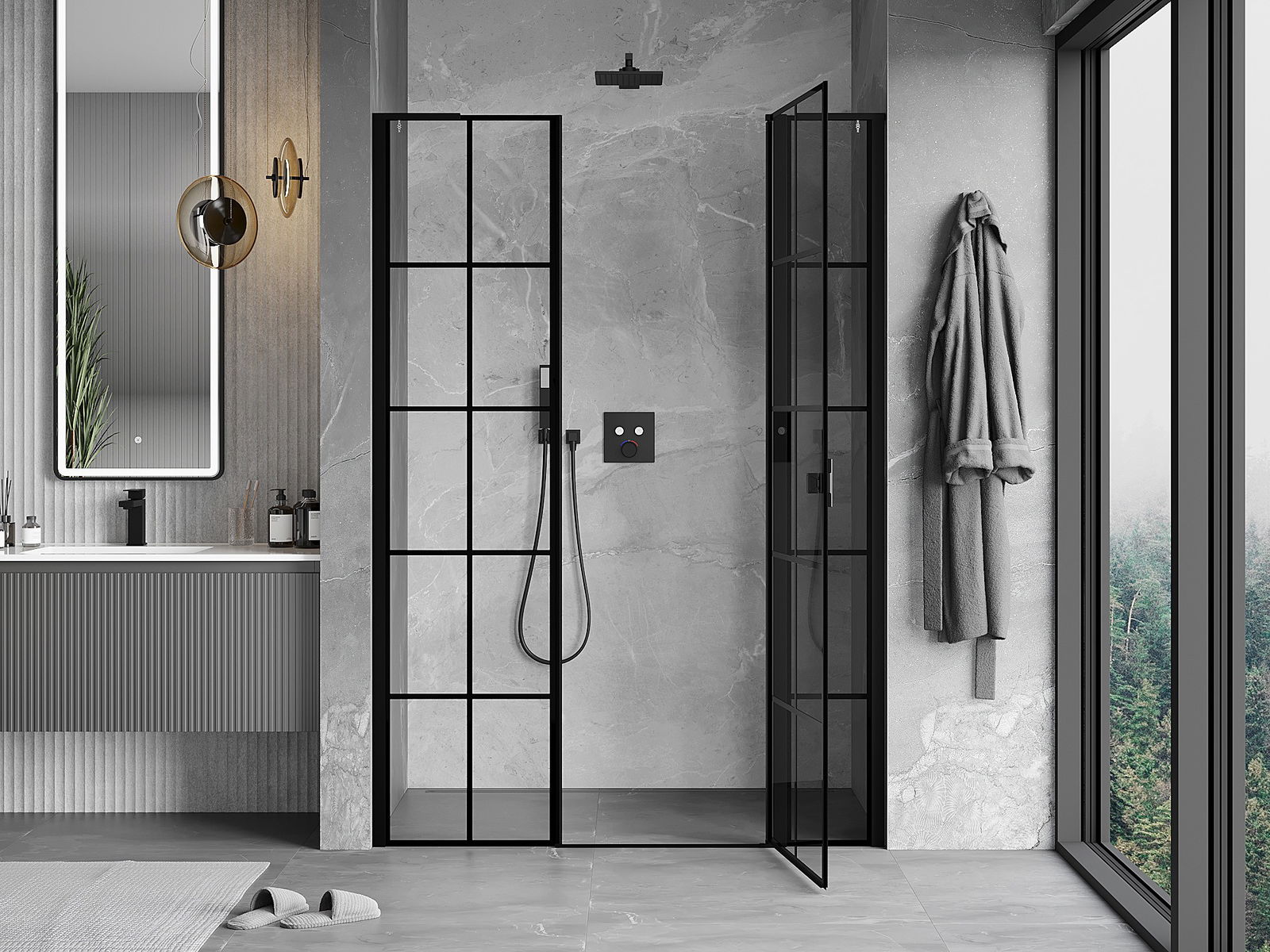 Mexen Mist L sprchové dveře otočné pravé 150 cm, černá mřížka, černé - 8A4L-150-001-70-77-P