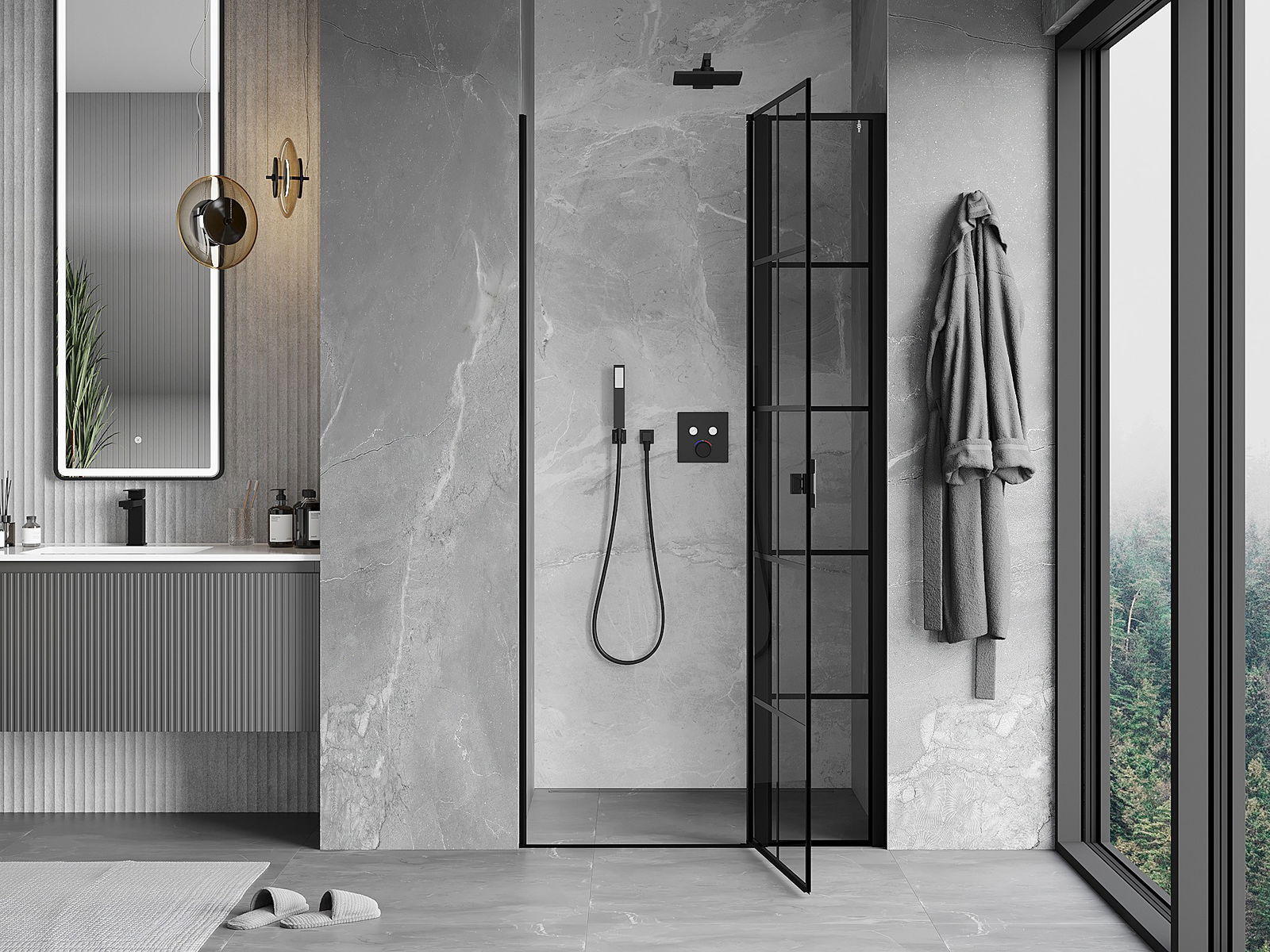 Praktická a pohodlná rukojeť je vyrobena z odolného a trvanlivého kovu. Moderní tvar ve spojení s povrchovou úpravou, která ladí s barvou profilů, dodává celku moderní a stylový vzhled, zdůrazňující estetiku každé koupelny.