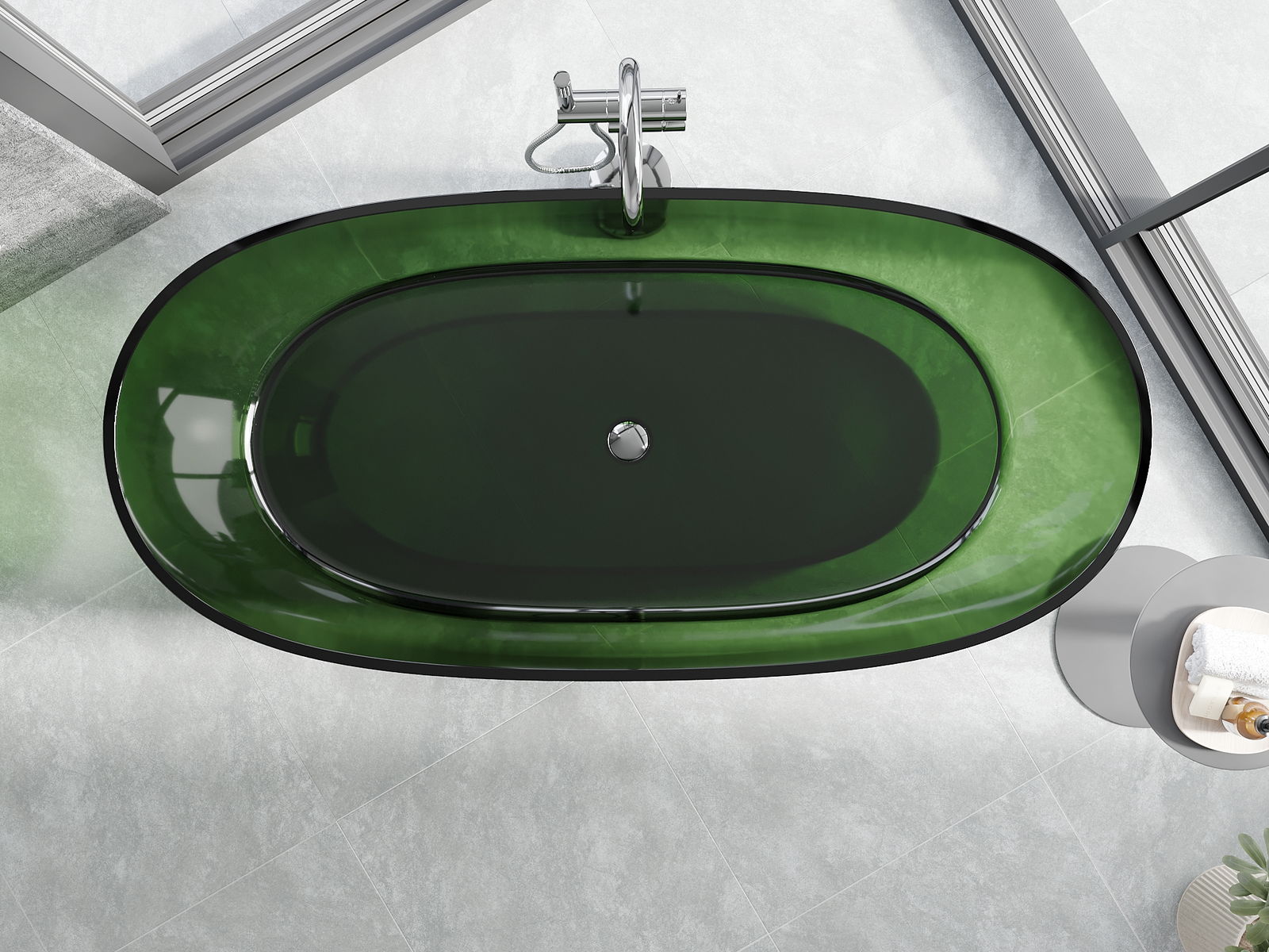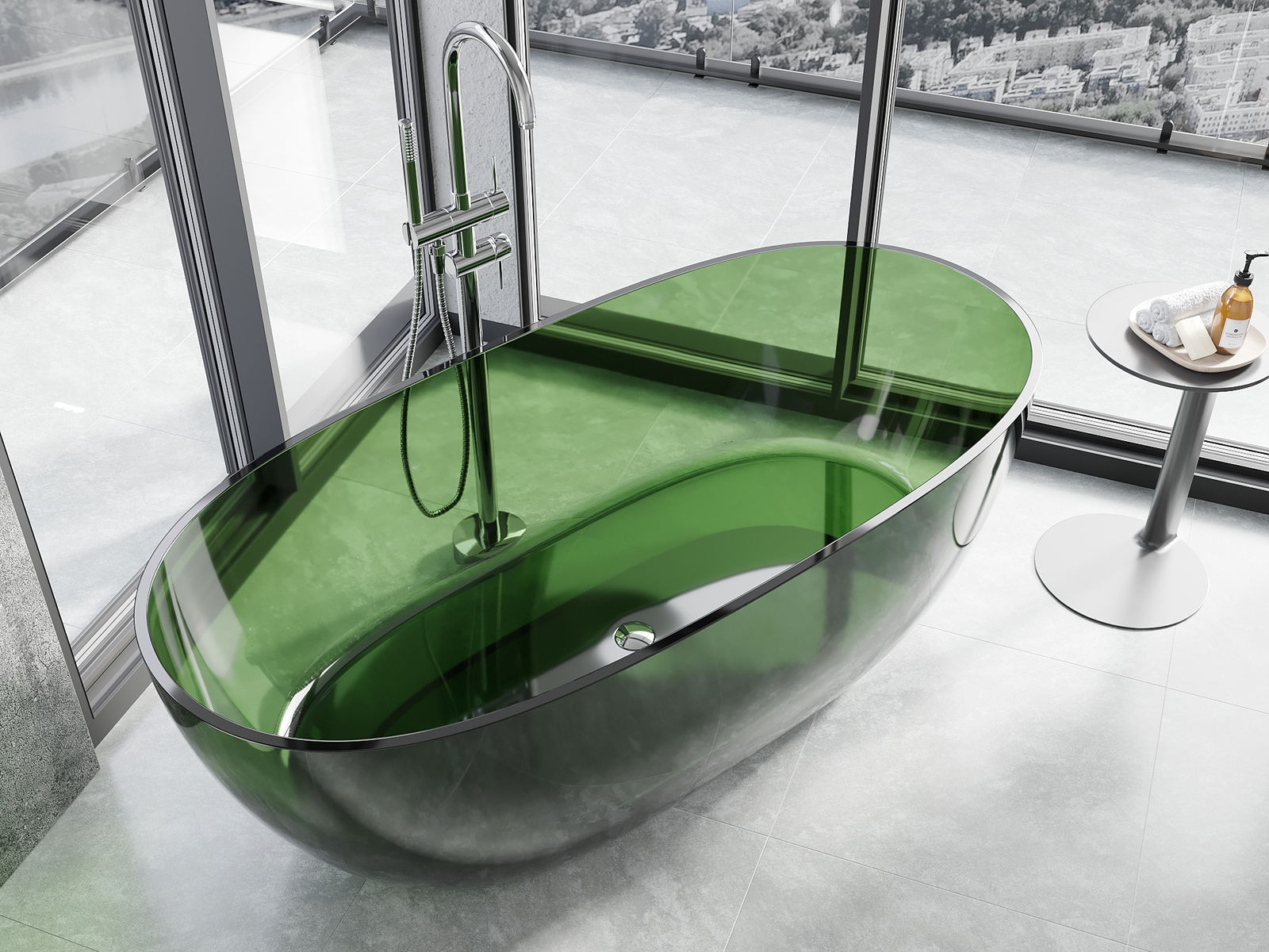 Jedná se o moderní materiál spojující elegantní vzhled s vysokou odolností. Je odolný vůči mechanickému poškození, snadno se čistí a je příjemný na dotek. Průhledná forma a tenký okraj vany jí dodávají lehkost a jedinečný charakter, čímž vytvářejí působivý prvek v uspořádání koupelny.
