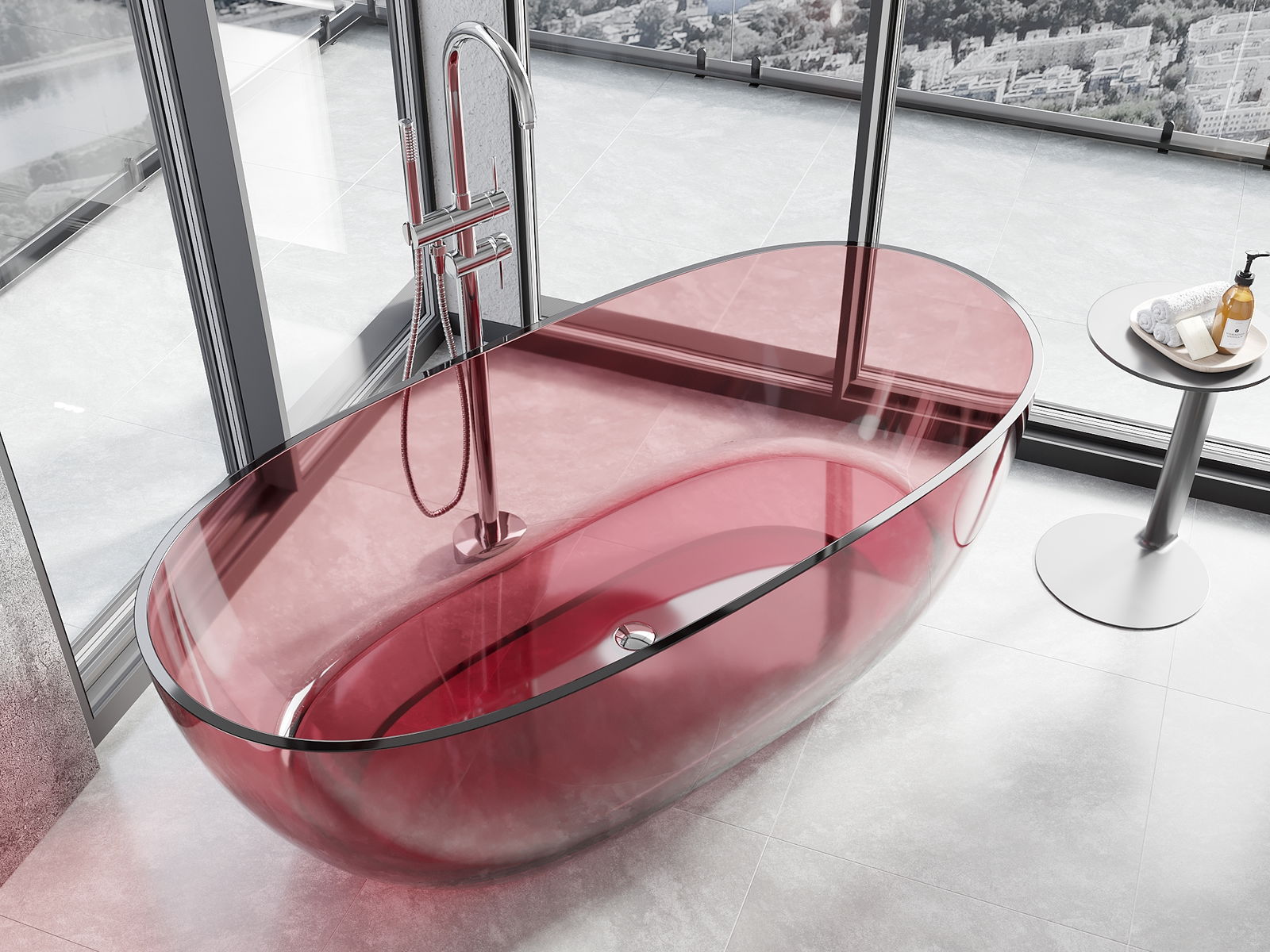 Jedná se o moderní materiál spojující elegantní vzhled s vysokou odolností. Je odolný vůči mechanickému poškození, snadno se čistí a je příjemný na dotek. Průhledná forma a tenký okraj vany jí dodávají lehkost a jedinečný charakter, čímž vytvářejí působivý prvek v uspořádání koupelny.