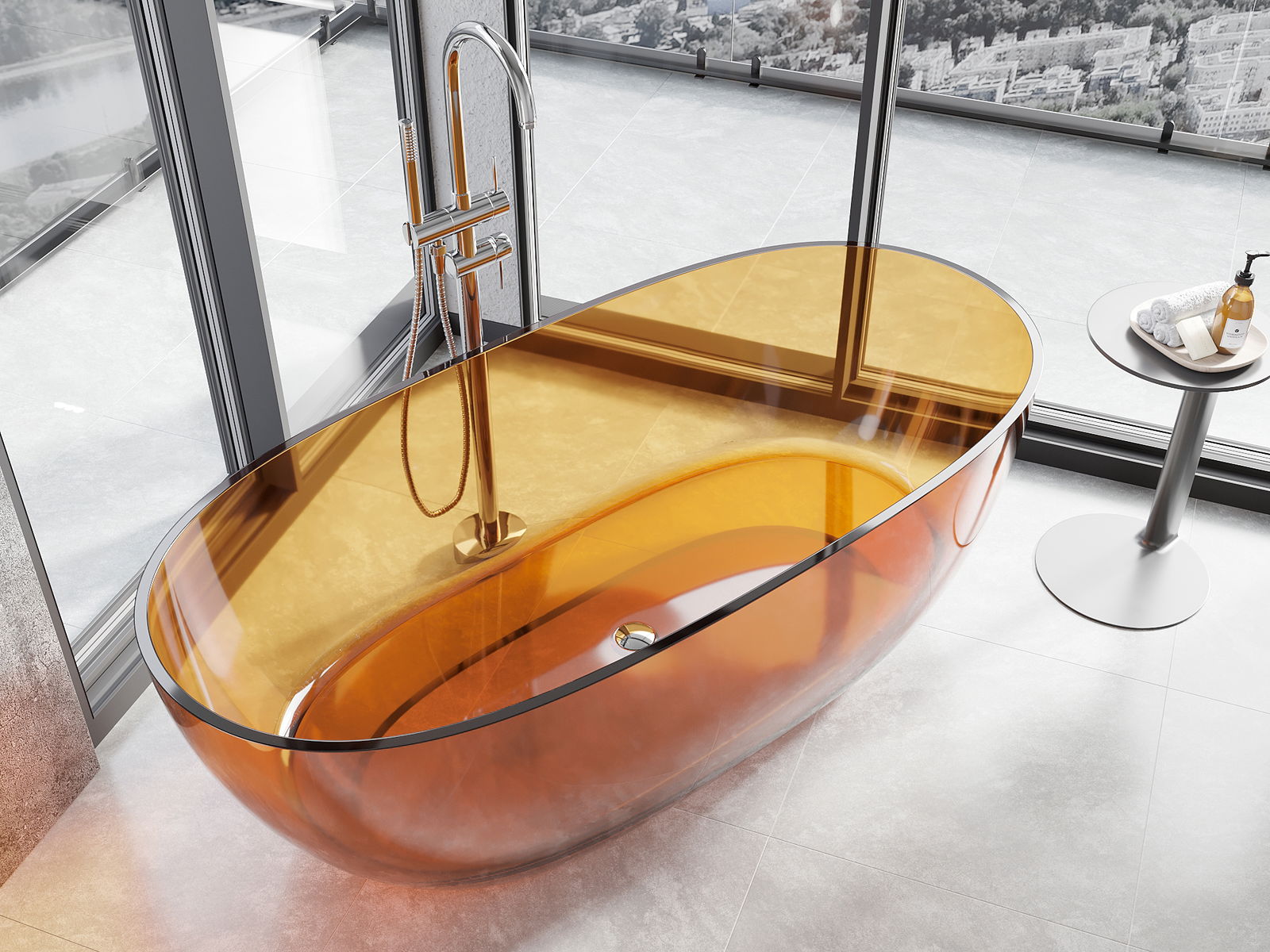 Jedná se o moderní materiál spojující elegantní vzhled s vysokou odolností. Je odolný vůči mechanickému poškození, snadno se čistí a je příjemný na dotek. Průhledná forma a tenký okraj vany jí dodávají lehkost a jedinečný charakter, čímž vytvářejí působivý prvek v uspořádání koupelny.