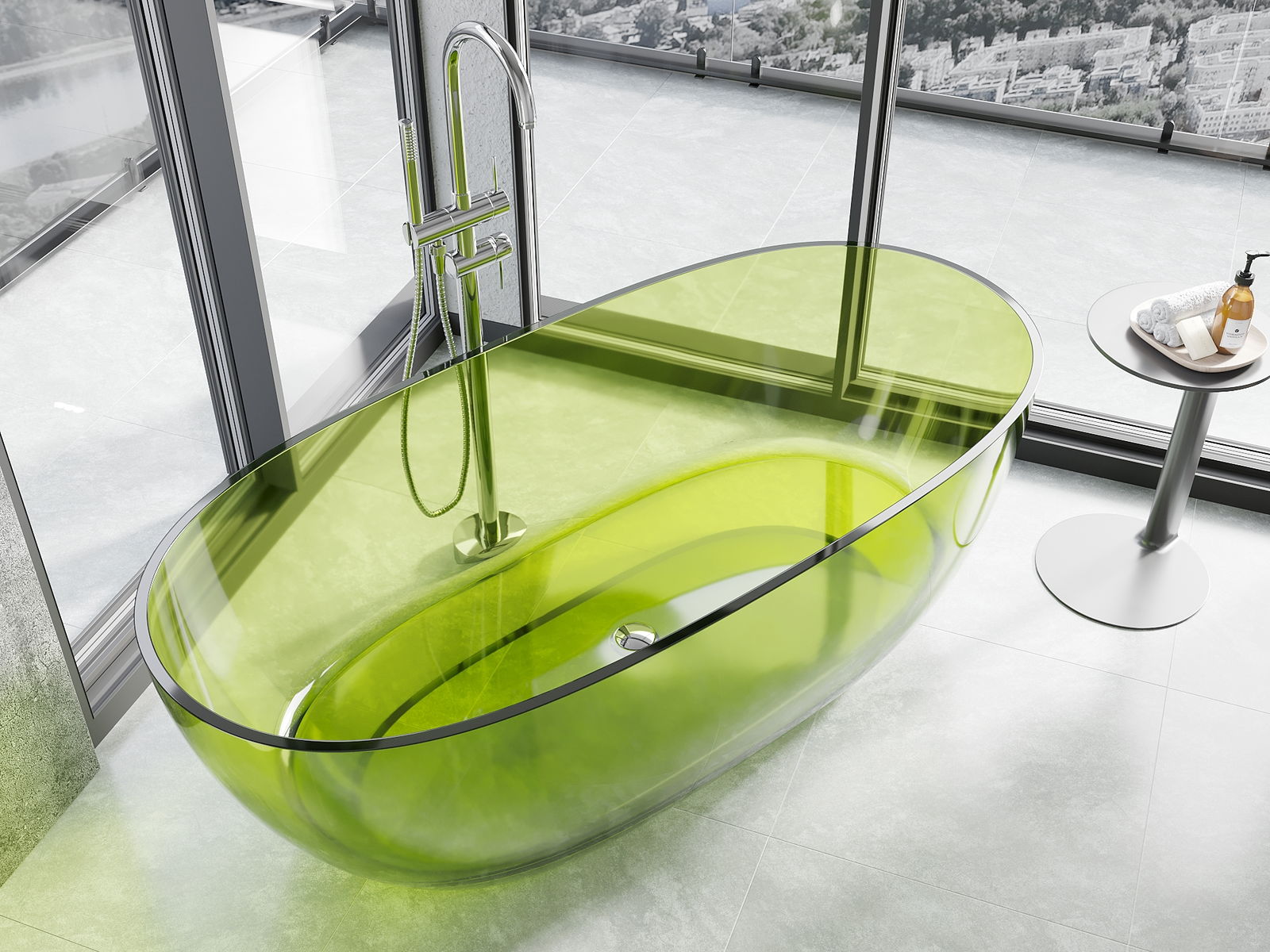 Jedná se o moderní materiál spojující elegantní vzhled s vysokou odolností. Je odolný vůči mechanickému poškození, snadno se čistí a je příjemný na dotek. Průhledná forma a tenký okraj vany jí dodávají lehkost a jedinečný charakter, čímž vytvářejí působivý prvek v uspořádání koupelny.