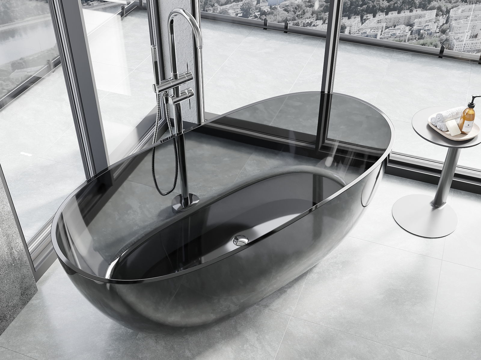 Jedná se o moderní materiál spojující elegantní vzhled s vysokou odolností. Je odolný vůči mechanickému poškození, snadno se čistí a je příjemný na dotek. Průhledná forma a tenký okraj vany jí dodávají lehkost a jedinečný charakter, čímž vytvářejí působivý prvek v uspořádání koupelny.