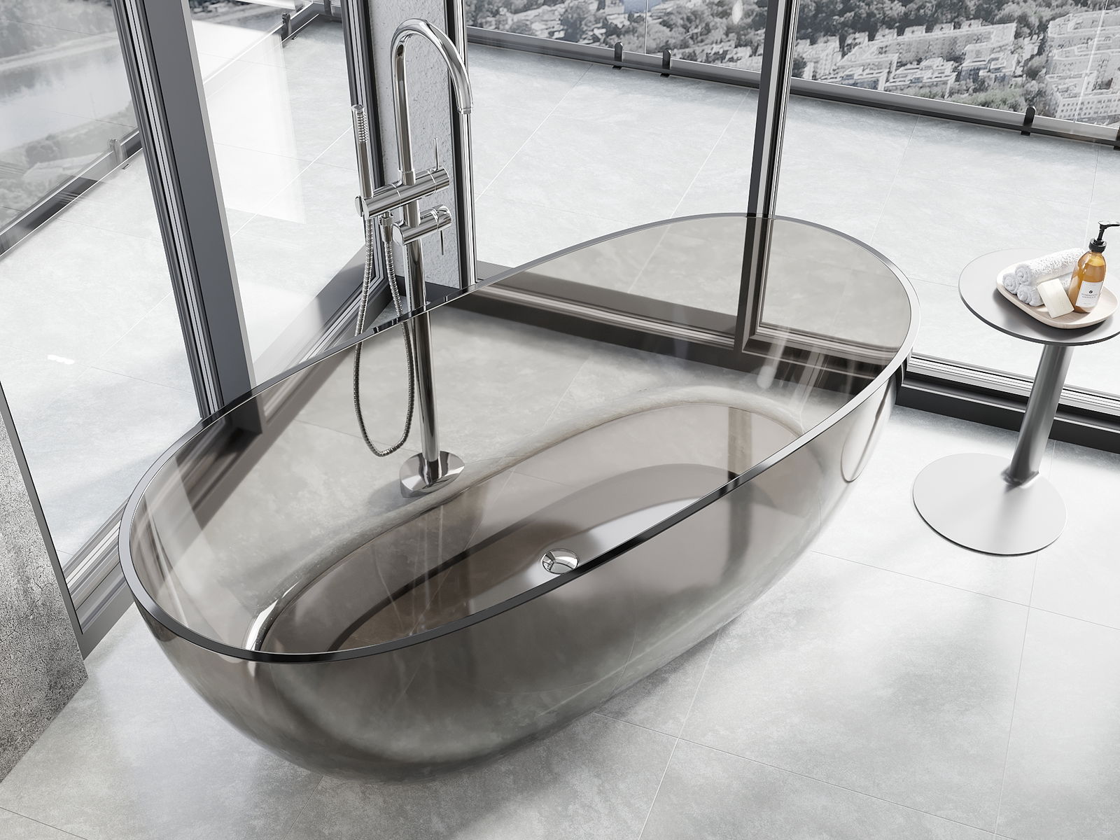 Jedná se o moderní materiál spojující elegantní vzhled s vysokou odolností. Je odolný vůči mechanickému poškození, snadno se čistí a je příjemný na dotek. Průhledná forma a tenký okraj vany jí dodávají lehkost a jedinečný charakter, čímž vytvářejí působivý prvek v uspořádání koupelny.