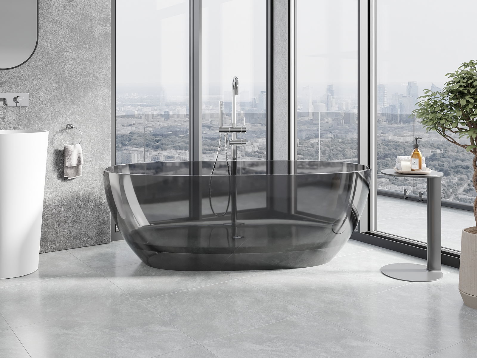 Jedná se o moderní materiál spojující elegantní vzhled s vysokou odolností. Je odolný vůči mechanickému poškození, snadno se čistí a je příjemný na dotek. Průhledná forma a tenký okraj vany jí dodávají lehkost a jedinečný charakter, čímž vytvářejí působivý prvek v uspořádání koupelny.