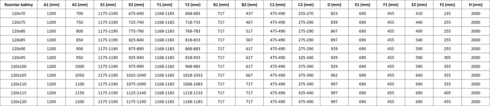 Rozměr: 120x80 cm (levé dveře 120 cm, pravé dveře 80 cm)