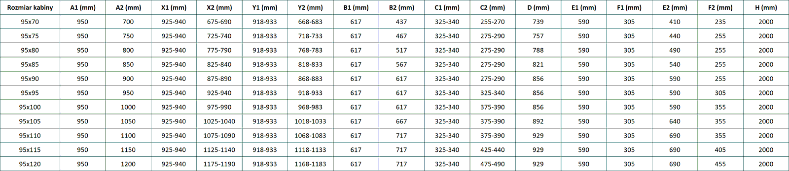 Rozměr: 95x85 cm (levé dveře 95 cm, pravé dveře 85 cm)