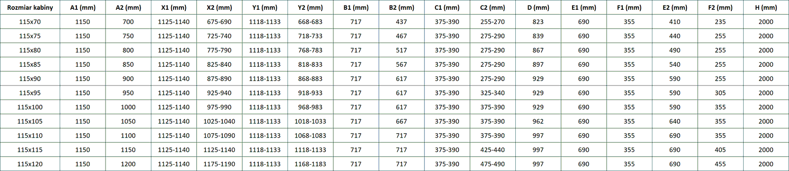 Velikost: 115x115 cm (levé dveře 115 cm, pravé dveře 115 cm)