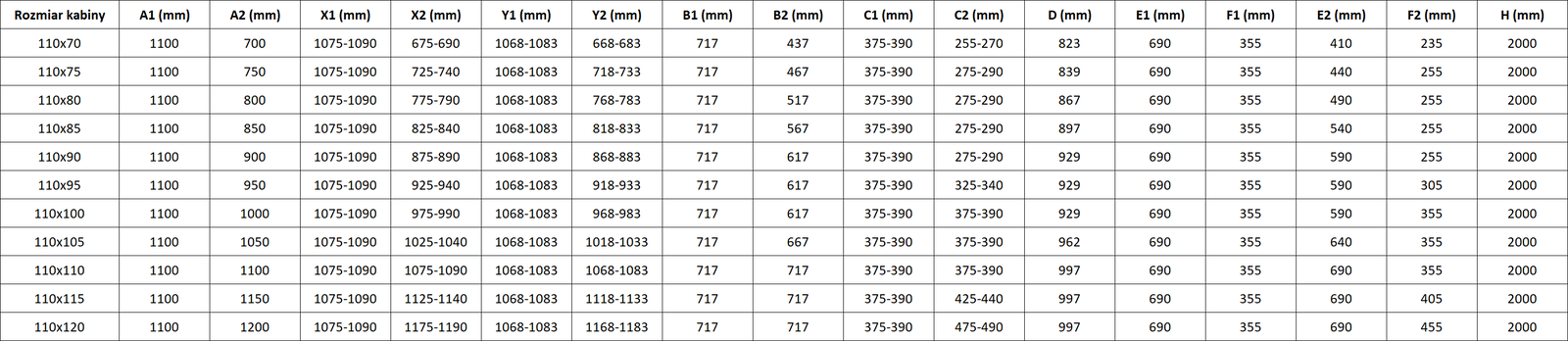 Rozměr: 110x80 cm (levé dveře 110 cm, pravé dveře 80 cm)